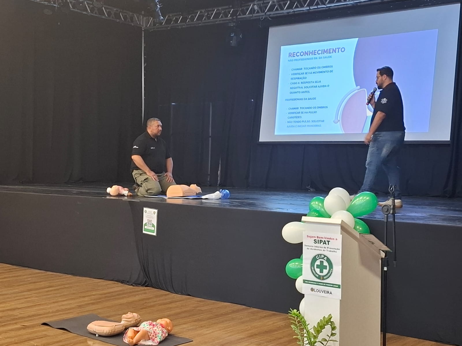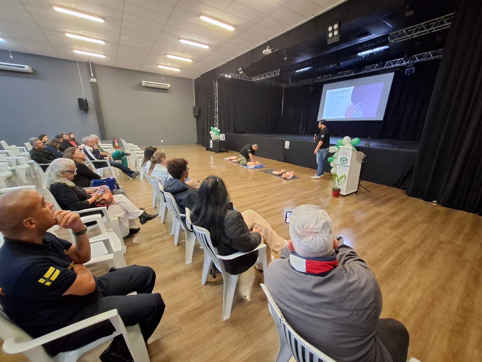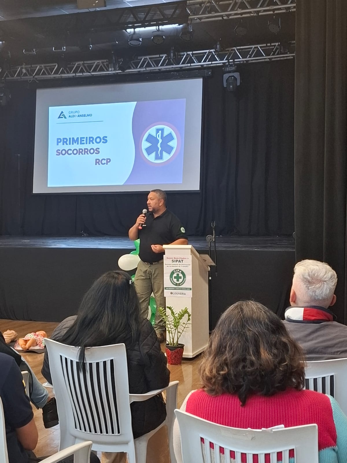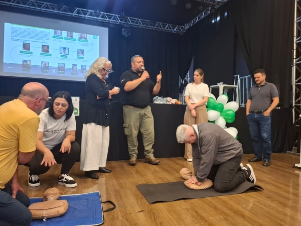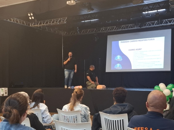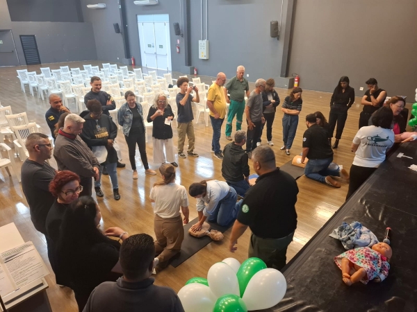 O tema central foi Suporte Básico de Vida e o treinamento foi conduzido voluntariamente pelo Grupo Aldi e Anselmo.