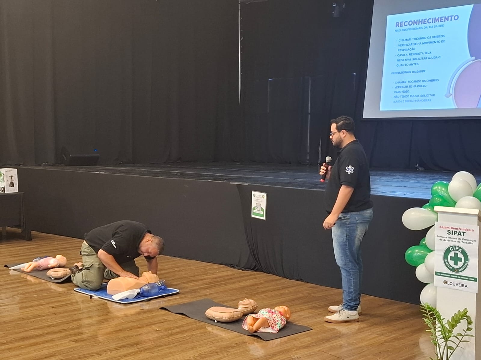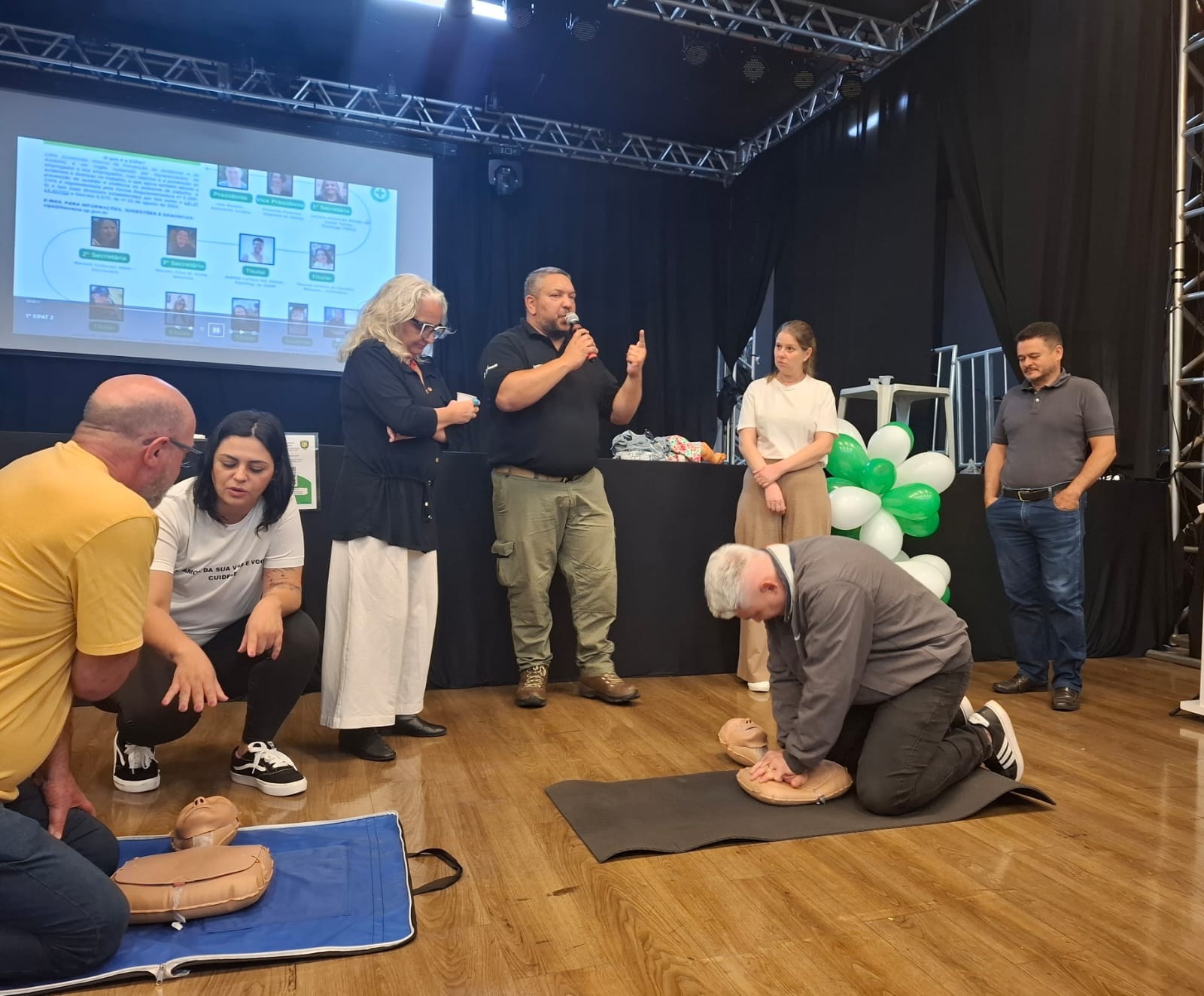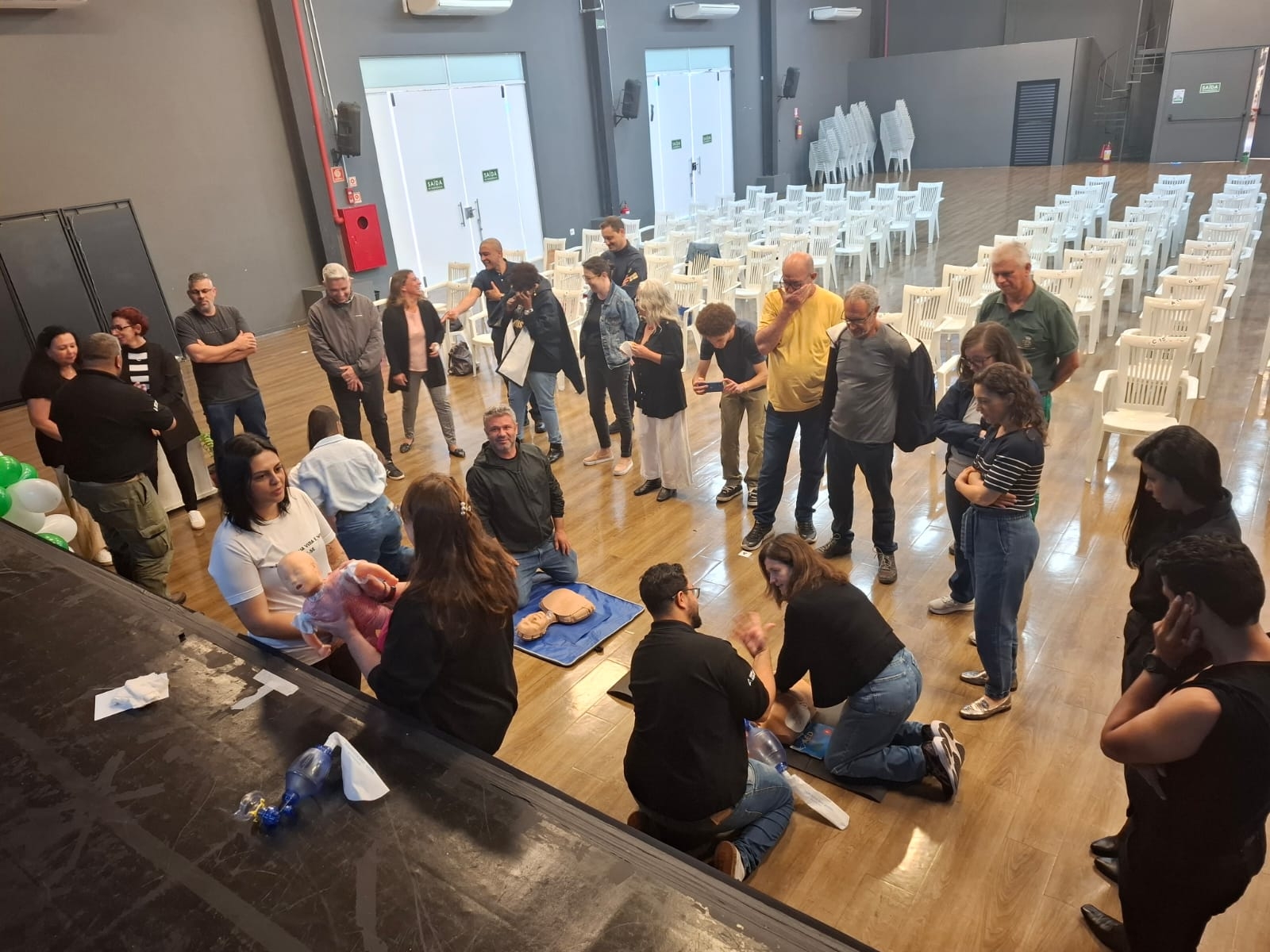 O tema central foi Suporte Básico de Vida e o treinamento foi conduzido voluntariamente pelo Grupo Aldi e Anselmo.