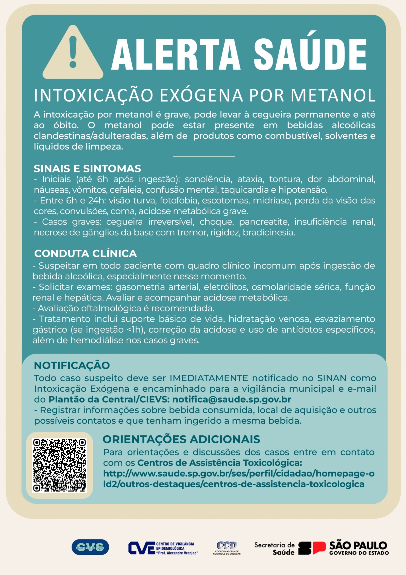 Diante de casos confirmados no Estado de São Paulo, Louveira emite alerta sobre intoxicação exógena por metanol.