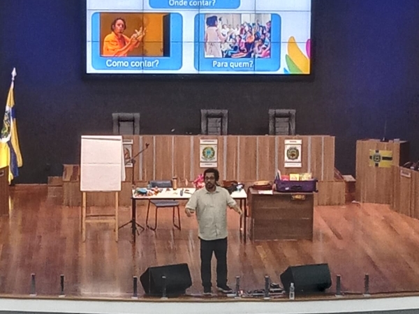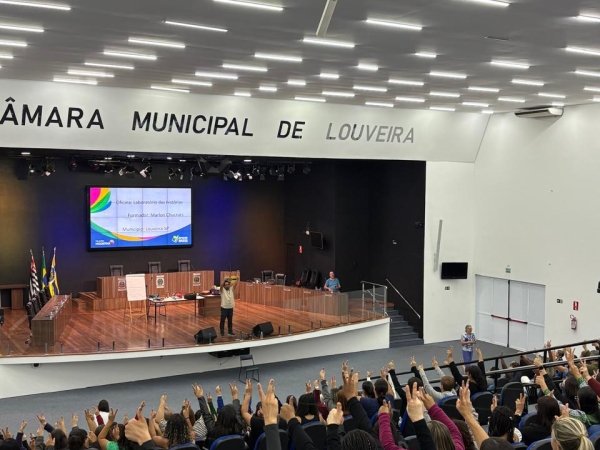 A Prefeitura de Louveira, por meio da Secretaria de Educação e em parceria com a Editora Moderna, realizou a formação "Oficina Laboratório das Histórias" nesta sexta-feira, 26 de setembro. O evento, conduzido pelo renomado Marlon Chucruts — pedagogo, diretor cênico e autor destacado — atraiu um público expressivo, com 200 participantes tanto no período da manhã quanto à tarde, no Plenário da Câmara.