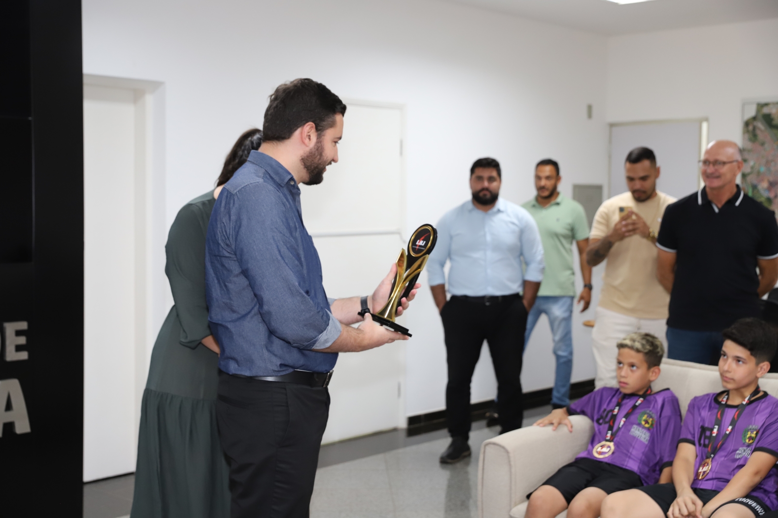 Prefeito de Louveira Recebe Atletas Campeões em Seu Gabinete
