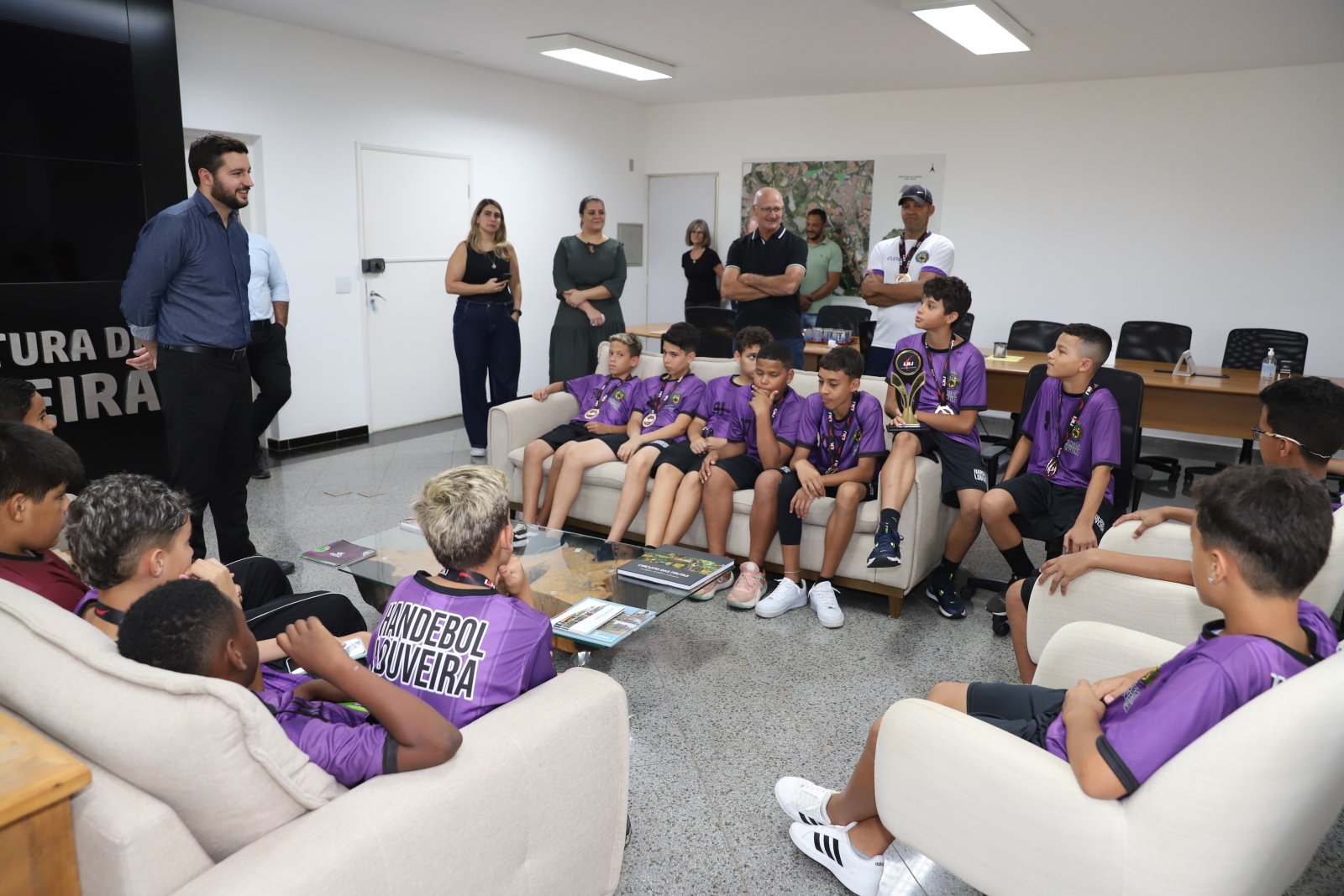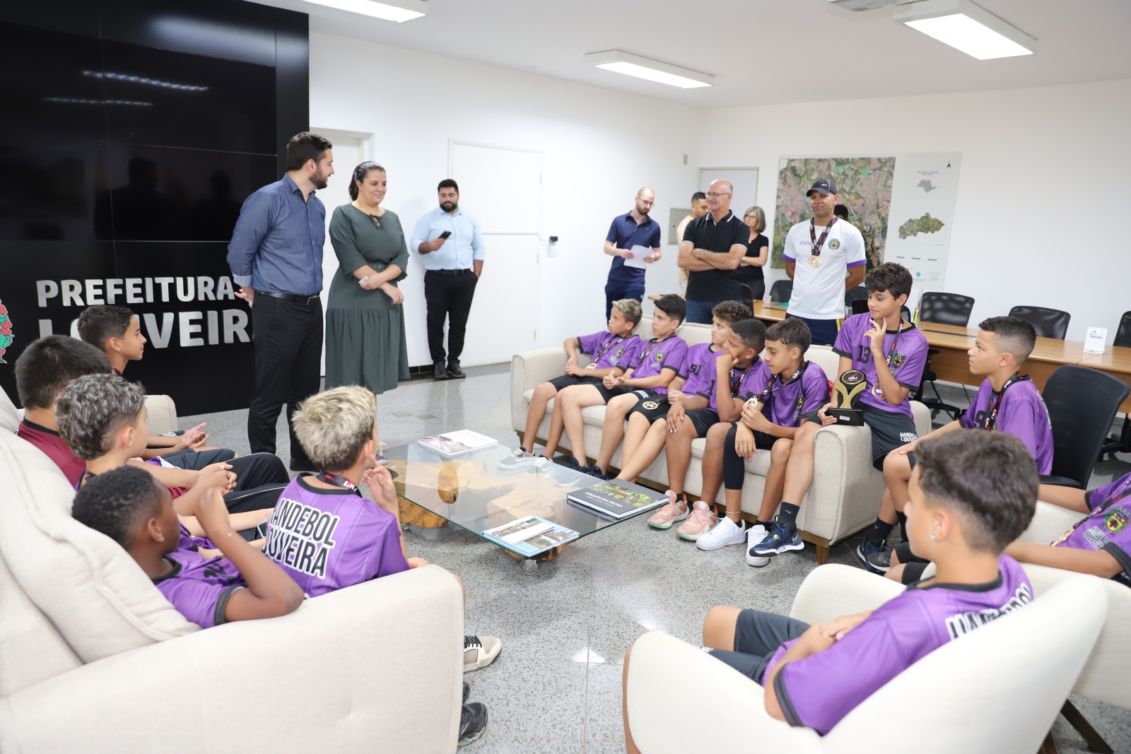 Na última terça-feira, 16 de dezembro, o prefeito Paulo Finamore recebeu, em seu gabinete, uma comitiva de atletas de handebol e voleibol que trouxeram orgulho à cidade de Louveira ao se destacarem como campeões neste ano. Durante a cerimônia, todos os jovens atletas foram homenageados com diplomas de mérito esportivo, simbolizando o agradecimento da cidade por suas notáveis conquistas.