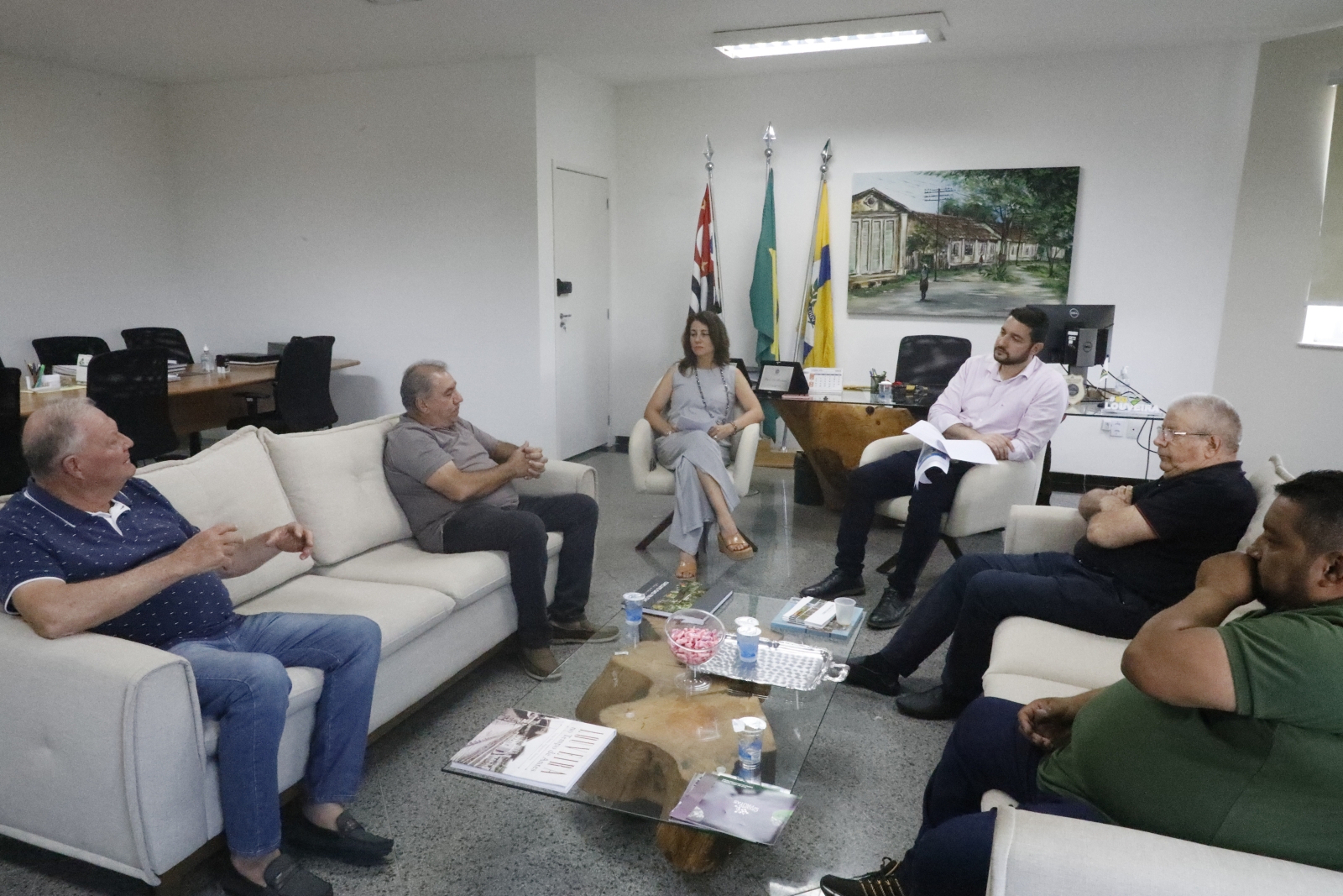 O Prefeito Paulo Finamore, juntamente com a secretária de assistência social Giany Póvoa, receberam no gabinete os representantes da Cáritas presentes na assinatura: Rubens Aparecido da Silva (Diretor Presidente), Evaristo José Cavalli (Diretor Vice-Presidente) e o Padre Adilson Amadi, fundador da Cáritas há 21 anos.
