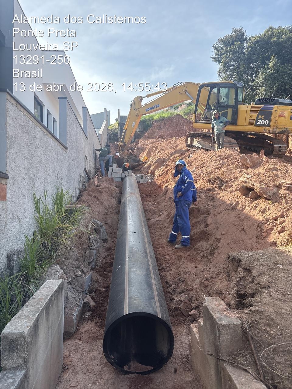 A Prefeitura de Louveira, por meio da Secretaria de Desenvolvimento Urbano, está realizando uma importante obra de drenagem na Alameda dos Calistemos, no Santa Isabel II, com o objetivo de solucionar um problema antigo de erosão causado pelo rompimento de uma escada hidráulica.