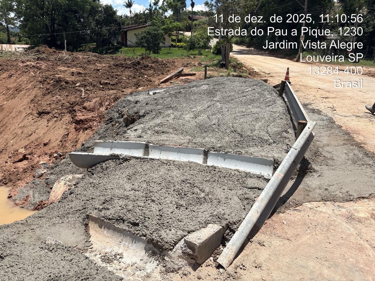 A Prefeitura de Louveira, através da Secretaria Municipal de Serviços Públicos, executou uma obra emergencial de infraestrutura na estrada pau a pique, no bairro Santo Antônio. A ação executou uma obra na drenagem de águas da chuva, em um ponto baixo da estrada, que sempre apresentou problemas em épocas de chuva.