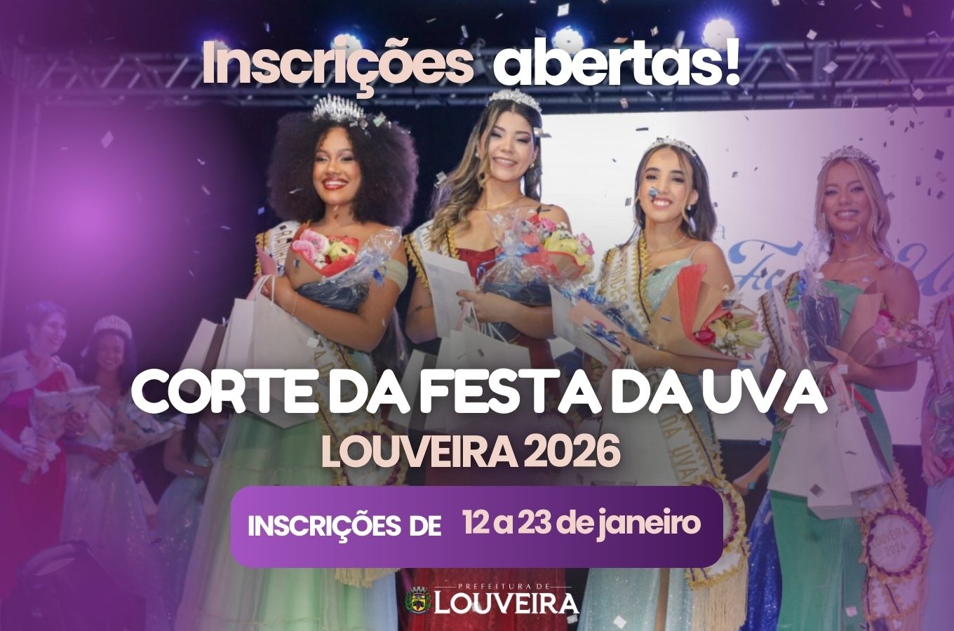 A Prefeitura de Louveira, por meio da Secretaria de Cultura e Eventos, já abriu as inscrições para a seleção da Corte da 55ª Festa da Uva e 11ª Expo Caqui de Louveira.
