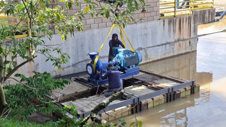 Prefeitura realiza ação de manutenção de bombas flutuantes da Represa da cidade