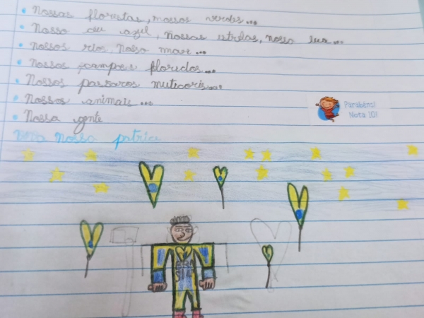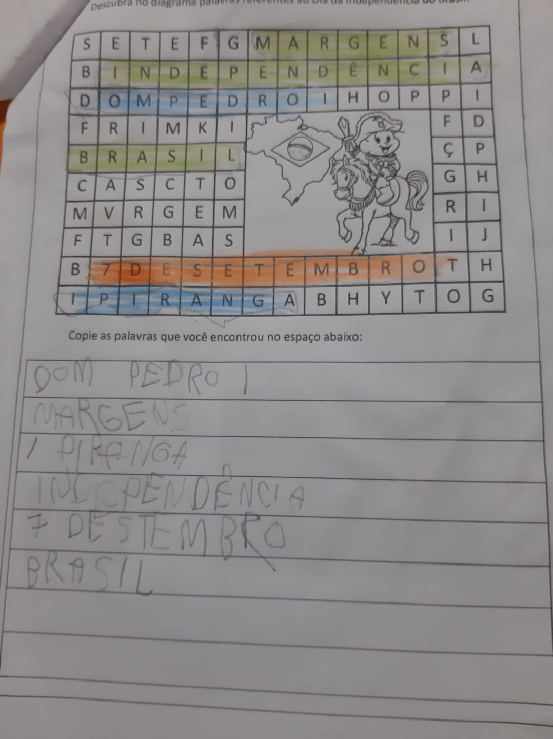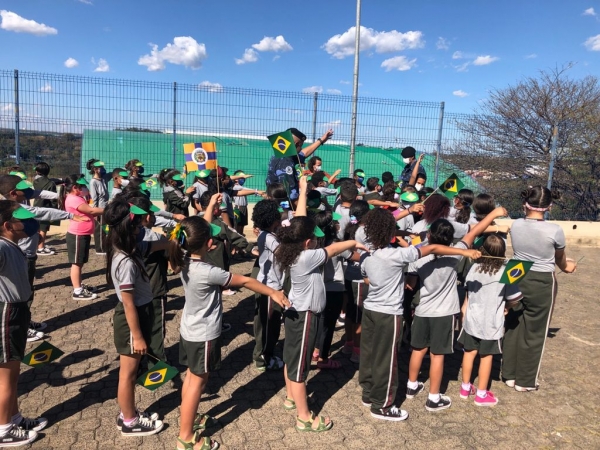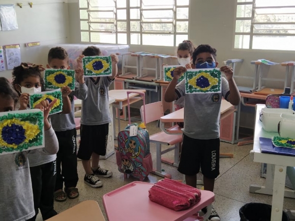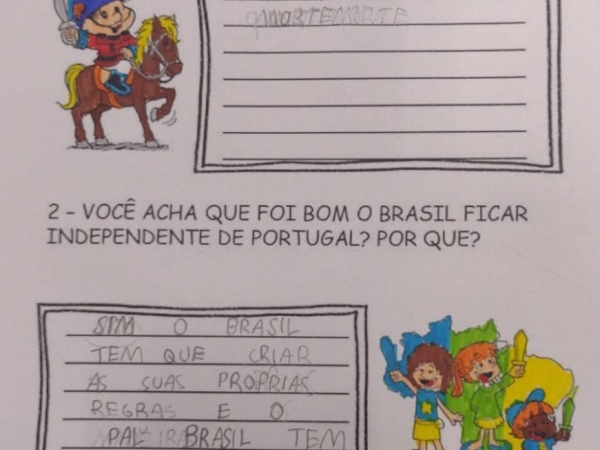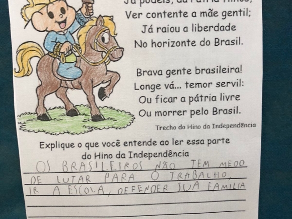 Entre as atividades, as crianças puderam estudar, conhecer e cantar o Hino do Brasil e o Hino da Independência. Os alunos também foram desafiados a criar desenhos e cartazes sobre o tema.