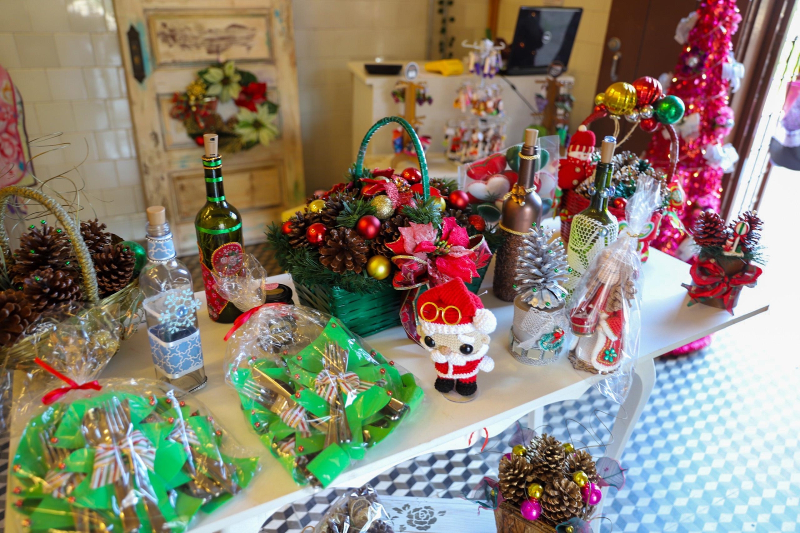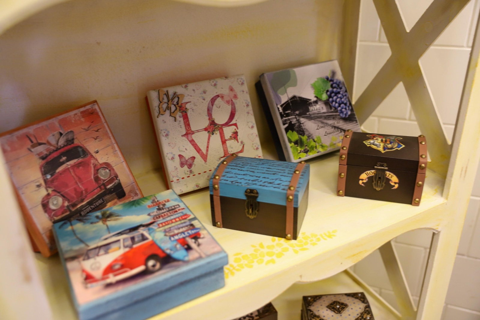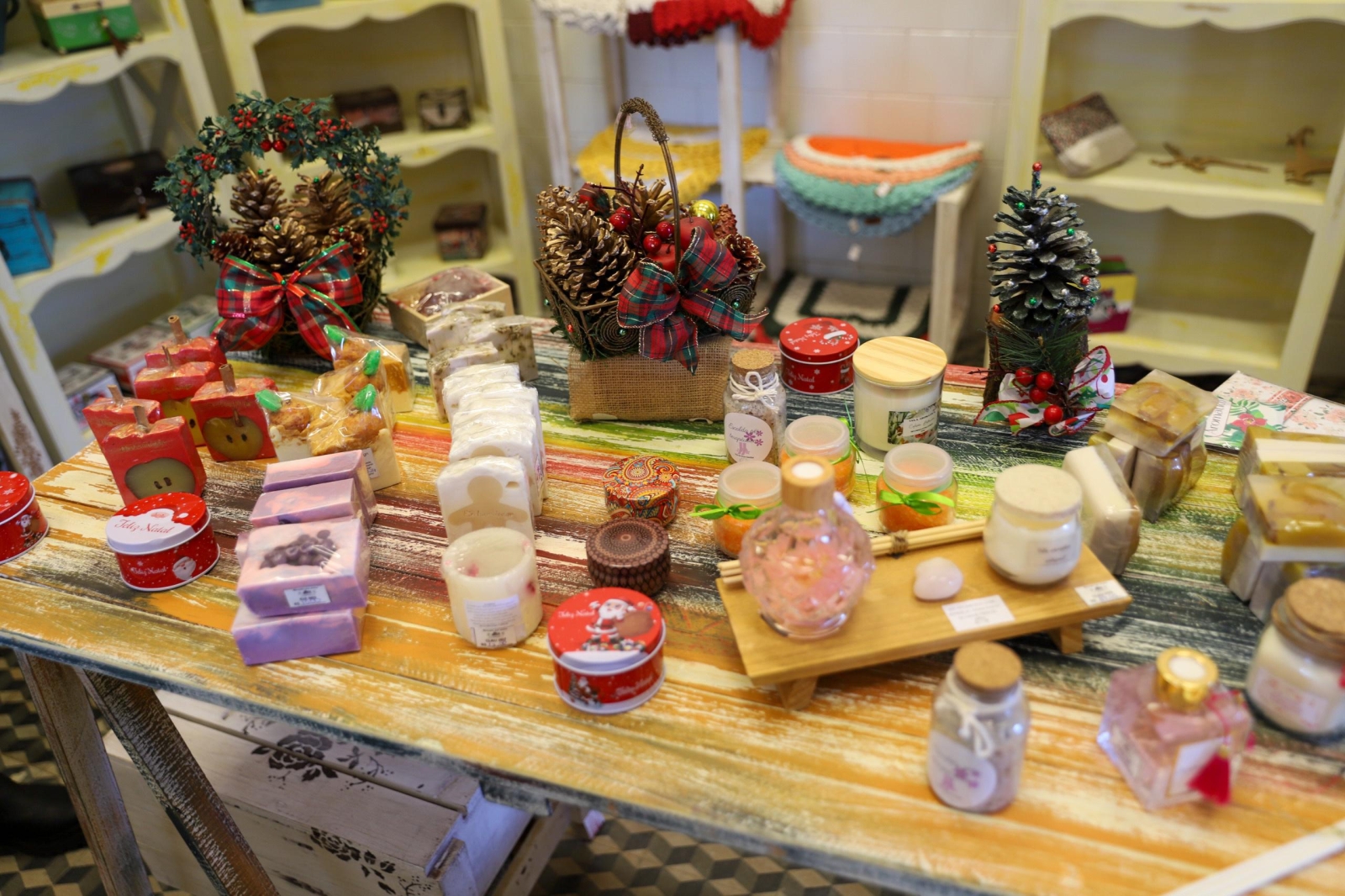 A loja conta com obras de arte, bordados, tapetes, peças de crochês, imãs de geladeira, chaveiros, entalhes de madeira, entre muitas outras coisas.