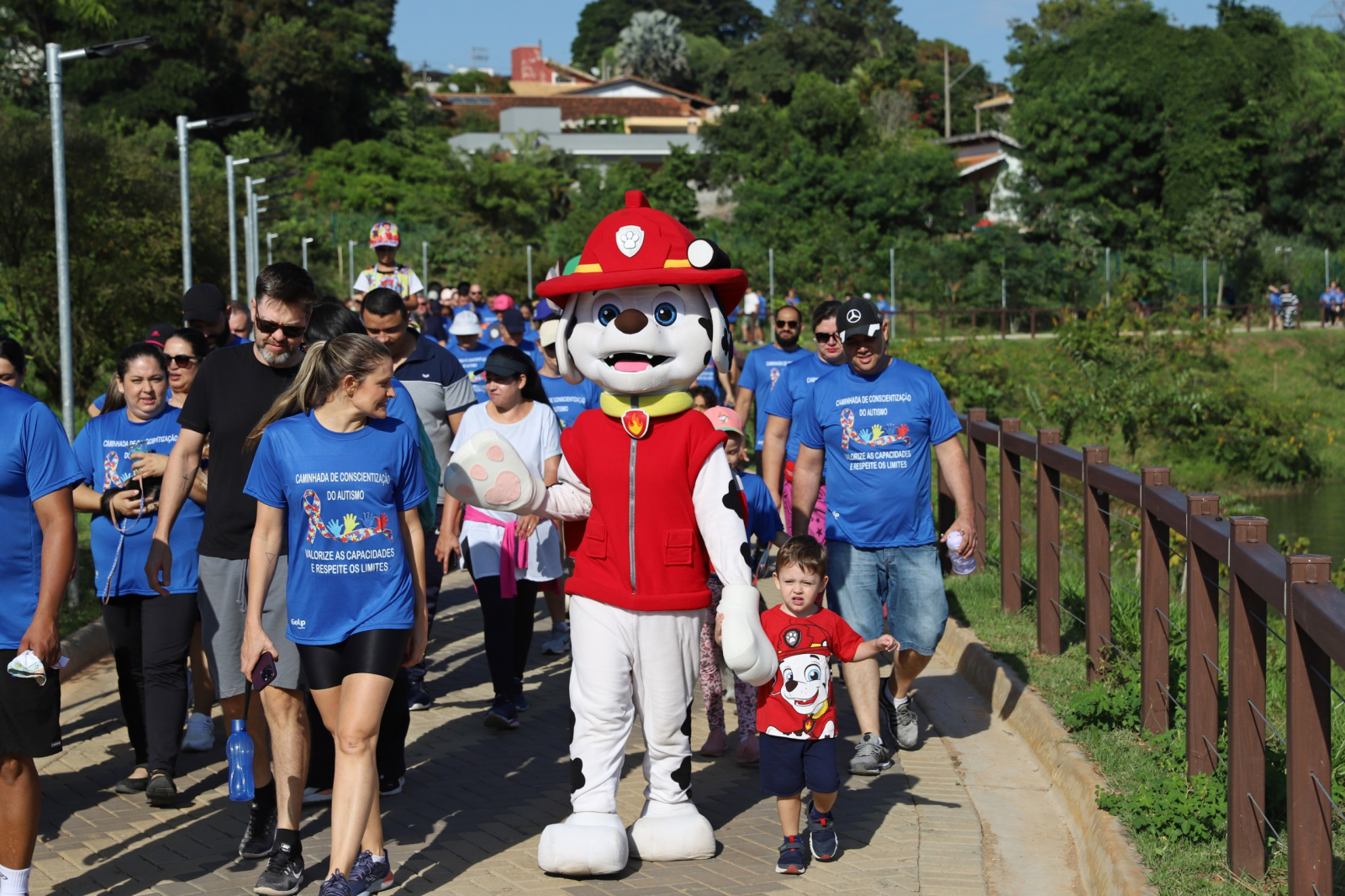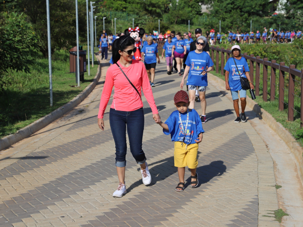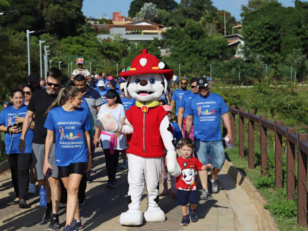 Além da caminhada, o evento contou com personagens fantasiados da Patrulha Canina, pula-pula, pipoca, algodão-doce e frutas para animar e entreter as crianças.