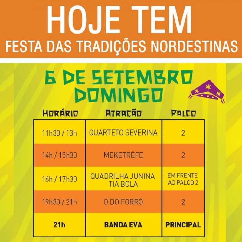 Governo | 06/09/2015 Confira as atrações deste domingo na Festa Nordestina E como show principal temos Banda Eva