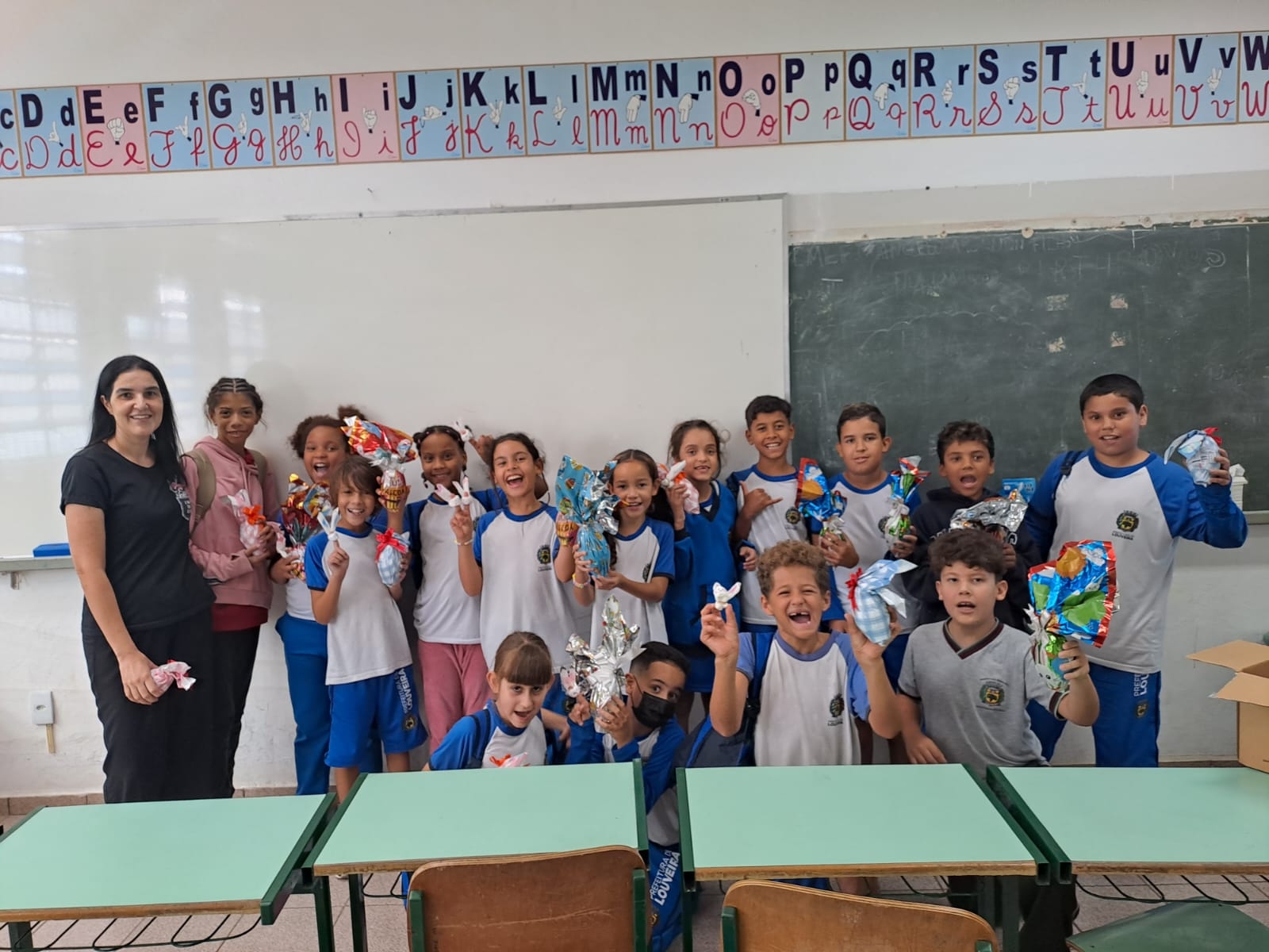 Os alunos da rede municipal de ensino tiveram nesta quinta-feira, de 6 de abril, um dia bastante divertido. Para celebrar a Páscoa, a Prefeitura, por meio da Secretaria de Educação, realizou a entrega dos ovos de chocolate para todas as crianças das unidades escolares de Louveira. A surpresa para as crianças foi acompanhada de diversas atividades pedagógicas e lúdicas, entre elas, a brincadeira de caça aos ovos.