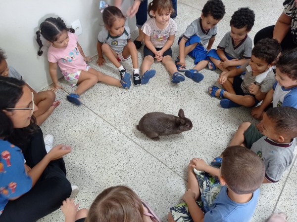 Os ovos de chocolate foram distribuídos hoje paras as crianças da rede municipal, mas as atividades em celebração à Páscoa começaram já na última semana, com a visita do Coelho em todas as unidades de Educação Infantil. O personagem passou pelas escolas interagindo com as crianças com brincadeiras e tirando muitas fotos. Para os alunos do Ensino Fundamental, além da visita do Coelho, a Prefeitura também realizou, por meio da Secretaria de Educação, o momento de contação de história, com o título “Procura-se um coelho”.