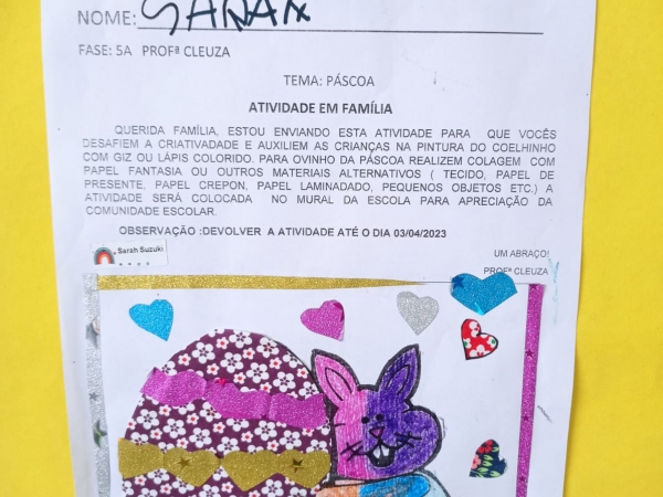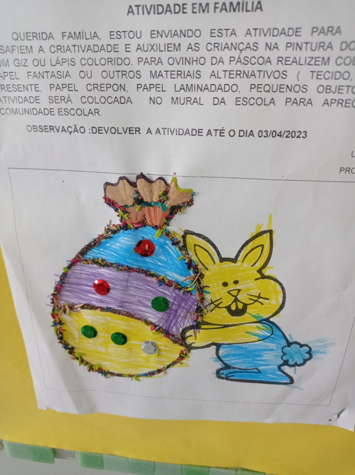 “A entrega dos ovos é um momento muito divertido para as crianças e marca esta época do ano. Mas os educadores já vêm trabalhando com as crianças muitas outras ações lúdicas dentro do tema da Páscoa, como os desenhos e as pinturas que acabam sendo expostos no pátio ou dentro das salas de aula, decorando o ambiente escolar, e também as brincadeiras. Mas cada escola realiza uma atividade diferente, dependendo da faixa etária do aluno”, conta a Secretária de Educação, Maria Luciane Felipe de Paula.