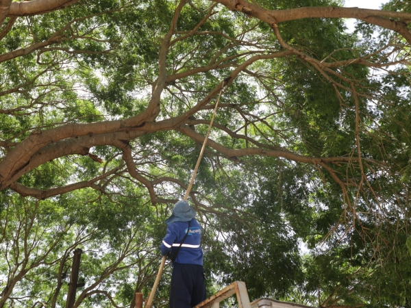 Em vistoria, técnicos da Gestão Ambiental identificaram que a linda árvore estava com grande infestação de cupins, pois se trata de uma espécie suscetível ao ataque de fungos, cupins e insetos de madeira seca, e não ter recebido os devidos cuidados nos últimos anos.