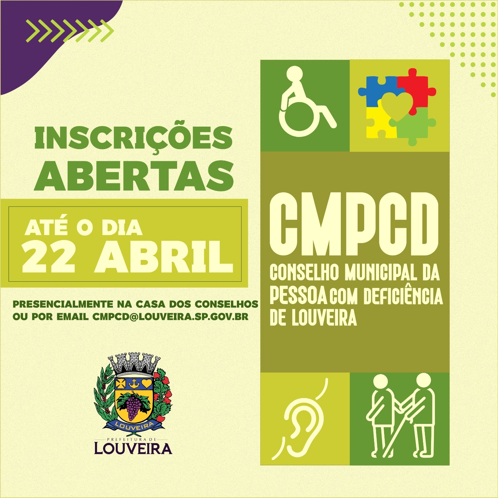 O Conselho Municipal da Pessoa com Deficiência de Louveira (CMPCD), vinculado à Secretaria de Assistência Social, informa que estão abertas as inscrições para preenchimento de vaga no segmento da sociedade civil, conforme a Resolução nº 02/2026 publicada no Diário Oficial do Município.