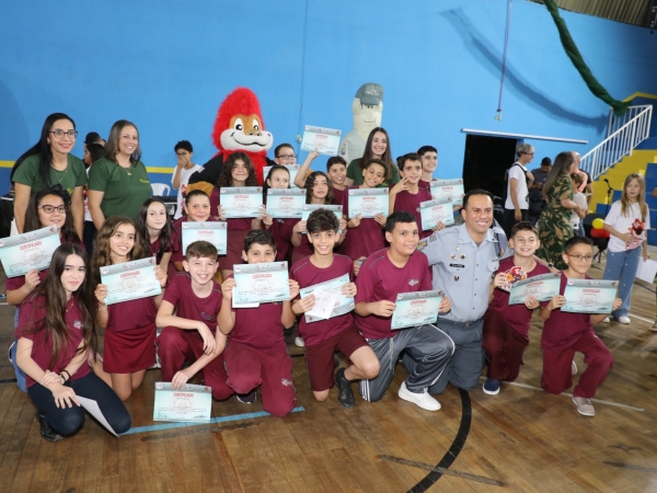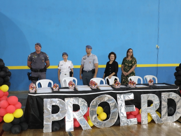 Estiveram presentes na cerimônia a vice-prefeita Neusa Orestes, a secretária municipal de Educação, Priscila Hass Ferreira, o comandante da 2ª Companhia da Polícia Militar, Capitão PM Renan Silva de Matteo, o comandante do 1º Pelotão da Polícia Militar, 1º Sargento PM Anderson Torres, a 1ª Tenente PM Dentista Daniele Bastiani, além do vereador Clóvis Faustino. Professores e familiares também acompanharam o momento, demonstrando o apoio e a valorização à iniciativa que busca conscientizar crianças e adolescentes sobre os perigos das drogas e da violência, promovendo valores essenciais como respeito, cidadania e autoestima.