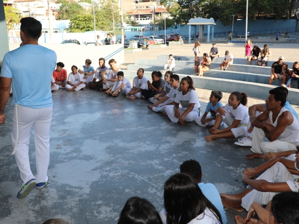 Na última quinta-feira (20), feriado do Dia da Consciência Negra, a Praça da Bica recebeu cerca de 150 pessoas para uma apresentação especial conduzida pelos professores Claudio e Rodrigo Brasil. Além do aulão de capoeira, o público participou de uma vivência de maculelê, expressão cultural que combina dança guerreira e ritmo, de atividades práticas de toques de berimbau e de palestras sobre os criadores da capoeira regional e da capoeira angola. A programação foi encerrada com uma vivência de samba de roda, reforçando a dimensão histórica e comunitária dessas manifestações.