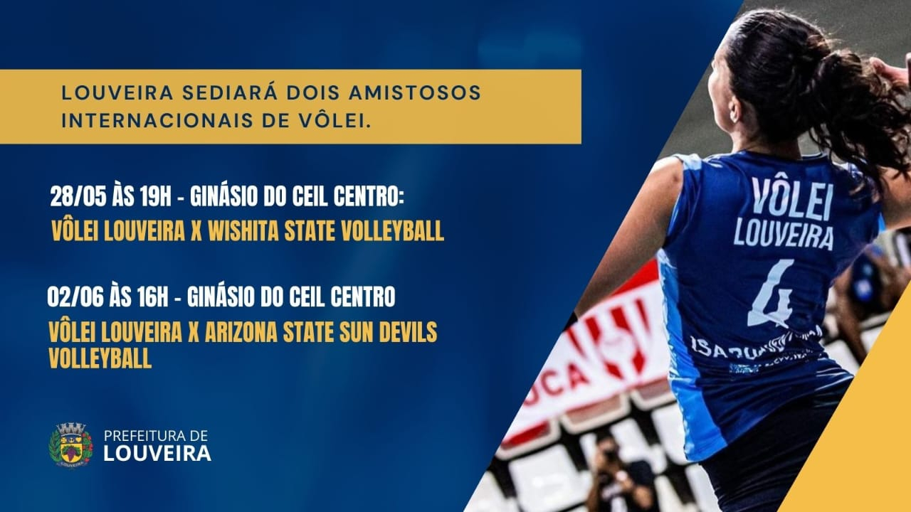 A equipe feminina sub21 do Projeto Vôlei Louveira joga hoje, 28, às 19h no Ginásio do Ceil Centro, contra o time Wishita State Volleyball do estado do Kansas, Estados Unidos. Já no domingo, dia 02, às 16h, também no Ceil Centro, as adversárias serão as atletas do Arizona State Sun Devils Volleyball, a seleção do estado do Arizona.