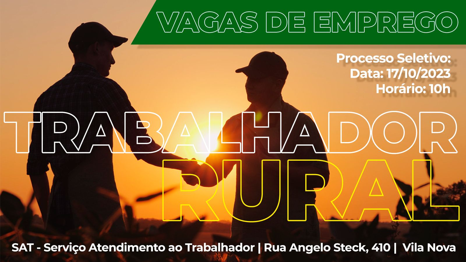 A Prefeitura, por meio do SAT Louveira, divulga nesta quinta-feira (05) uma oportunidade de emprego para Trabalhador Rural. São 3 vagas masculinas e que não exigem experiência.