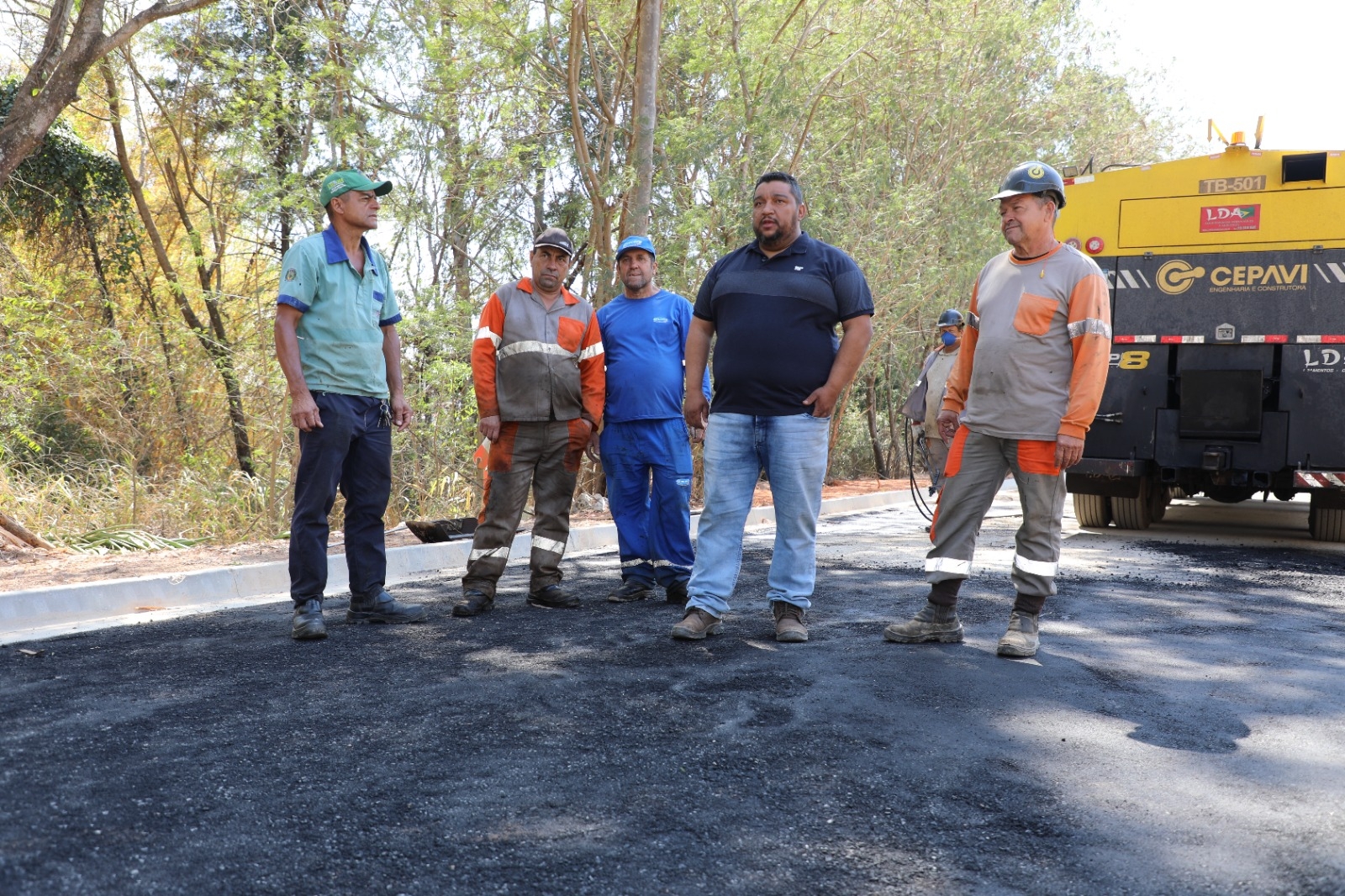 Agora, de forma correta, após a obra de construção de toda a rede de drenagem pluvial (captação de água da chuva) a Rua Maestro Izidoro Scarance recebe a fase semifinal com a impermeabilização do solo, protegendo a base.