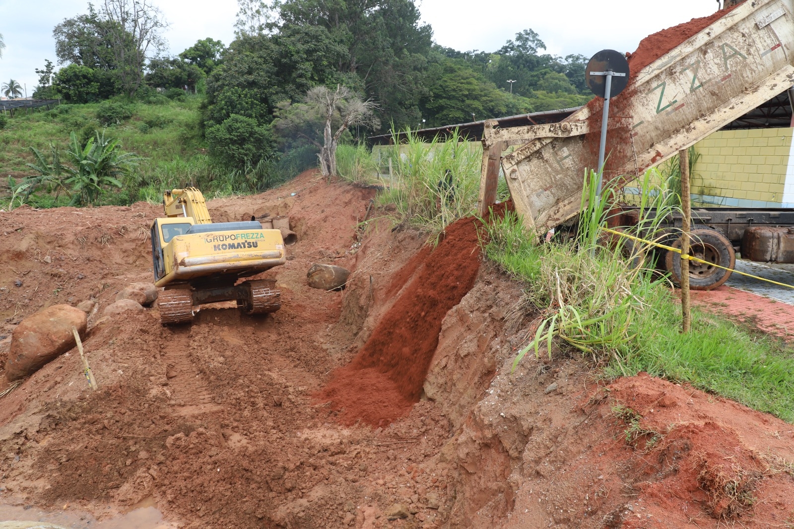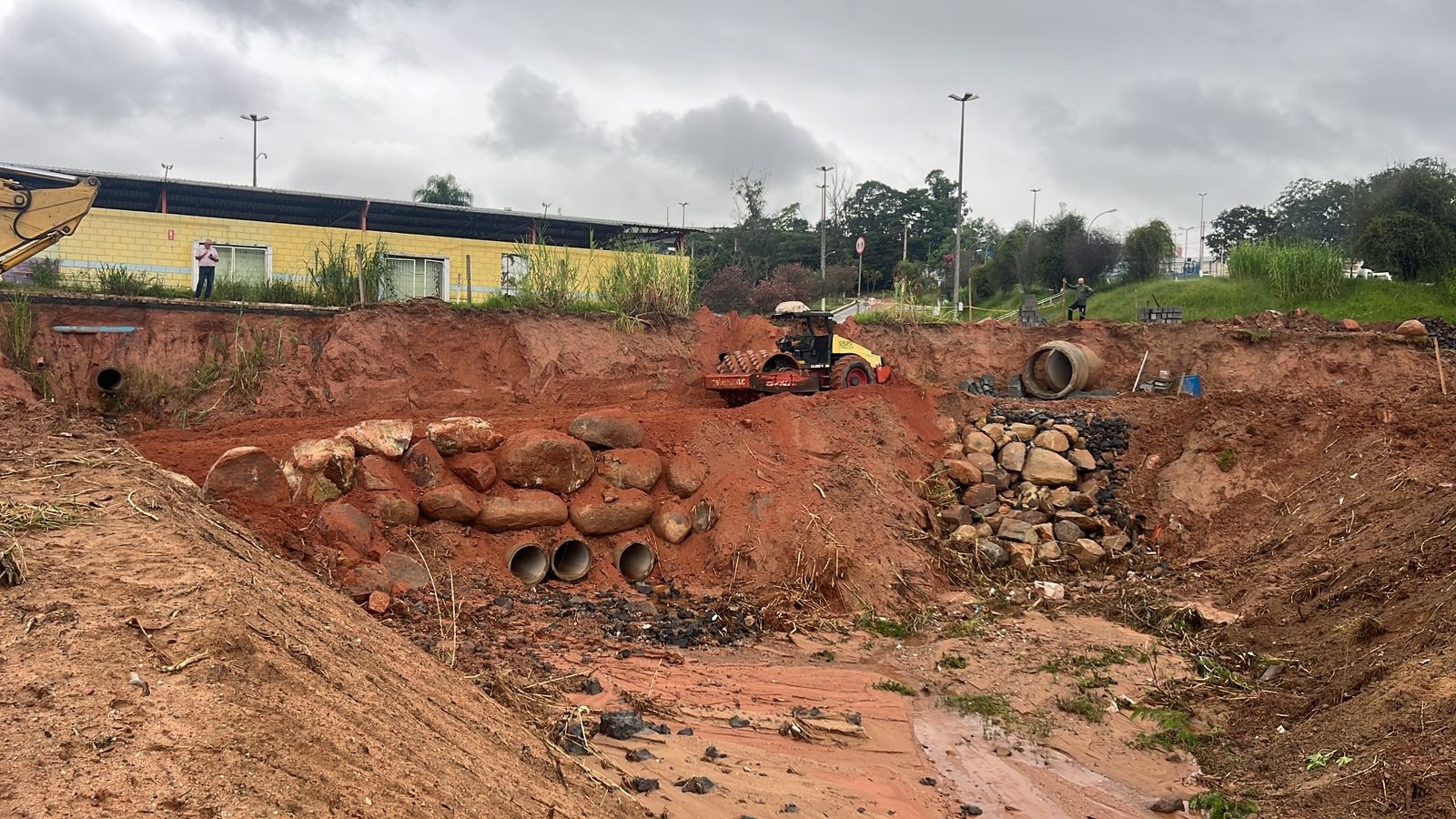 Toda a área onde as obras estão em andamento passará por reaterro, garantindo a cota necessária para o prolongamento das galerias existentes. Entre elas, destaca-se uma galeria tripla de 800mm, responsável pela captação de águas pluviais na região da Rodovia Romildo Prado, cuja extravasão ocorre no trecho em obras.