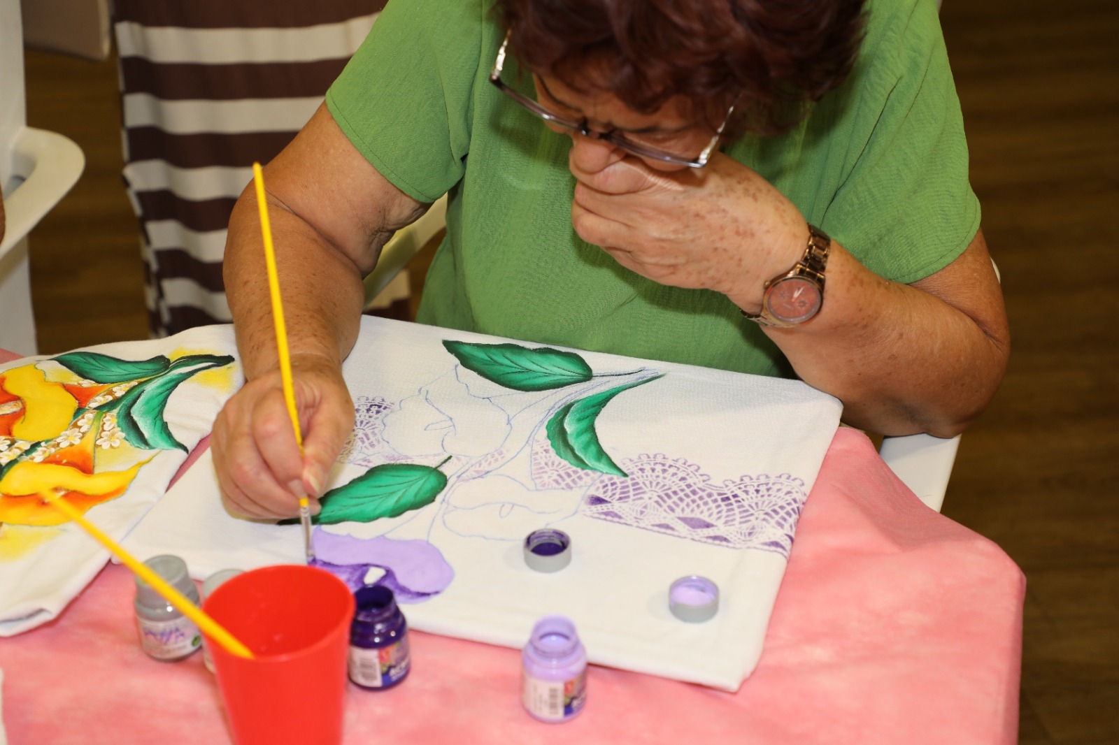 A professora de pintura Maria José, responsável por promover essa tarde agradável com suas alunas, comentou que o objetivo foi promover, por meio do artesanato, momentos de conscientização, acolhimento e fortalecimento da saúde emocional das mulheres, em especial no mês do Outubro Rosa. “A proposta une arte, autocuidado e acolhimento, mostrando como o artesanato pode ser uma ferramenta de bem-estar e fortalecimento pessoal. A iniciativa busca transformar o Outubro Rosa em um momento de encontro, aprendizado е superação para mulheres que encontram no artesanato um caminho de cura, renda e expressão de sua força interior”, comentou a professora.