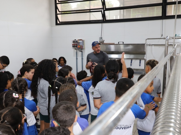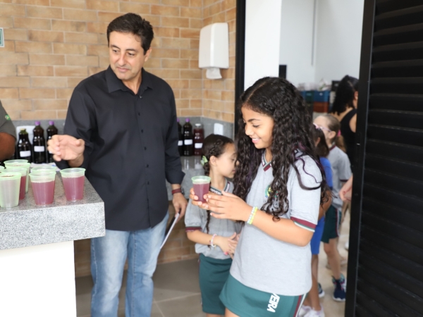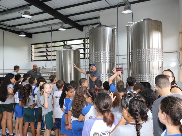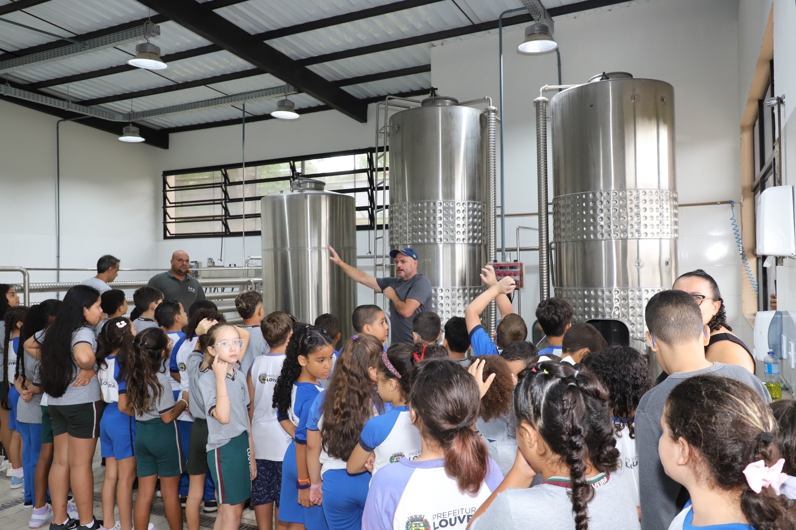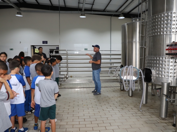 Durante a visita à Fábrica Municipal de Sucos, os alunos foram acompanhados do secretário municipal de Desenvolvimento Econômico Jailson Marinho e conheceram de perto o processo de produção da bebida elaborada a partir das uvas cultivadas no município. A atividade reforçou a importância da agricultura local, valorizando os produtores da cidade e evidenciando o cuidado com a qualidade da alimentação oferecida na rede municipal.
