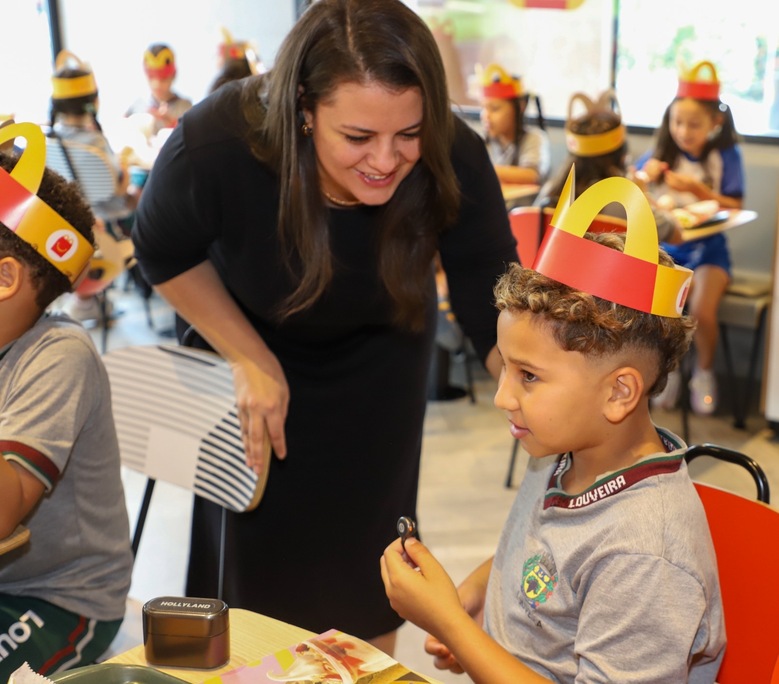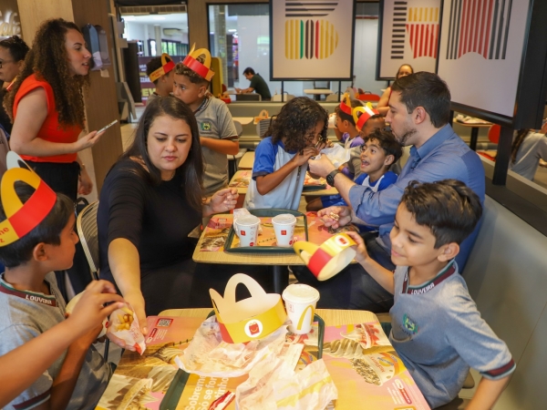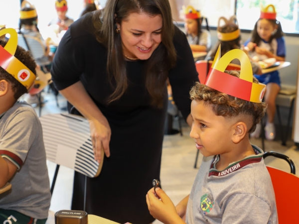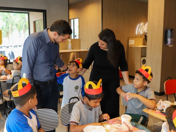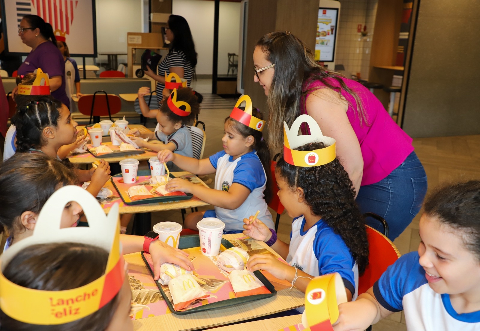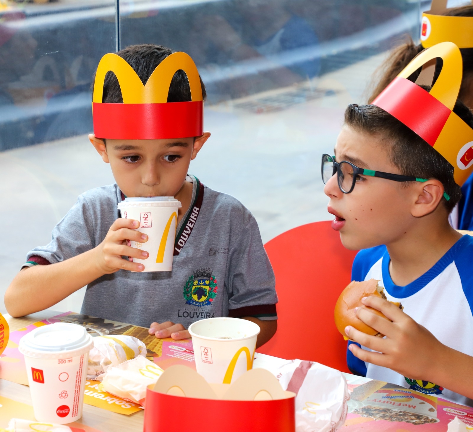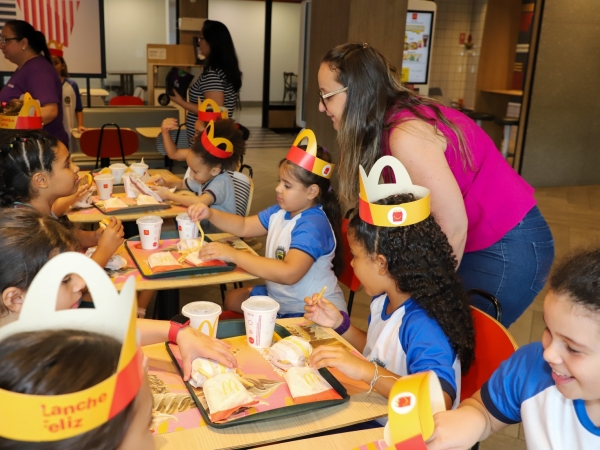Na sequência, os estudantes foram recepcionados na unidade de Louveira do McDonald's, onde participaram de um lanche oferecido pelo restaurante, sem custos para o município. Para muitos alunos, esse foi um momento ainda mais especial: alguns viveram a experiência de estar no McDonald’s pela primeira vez, tornando a atividade não apenas educativa, mas também marcante do ponto de vista social e emocional. O momento proporcionou integração, convivência e a vivência de uma experiência diferenciada, ampliando o repertório cultural e social das crianças.