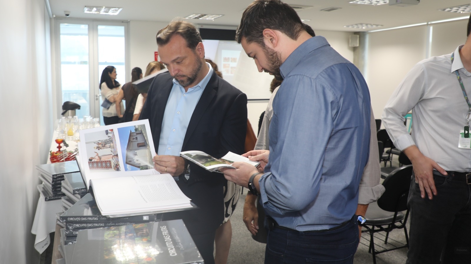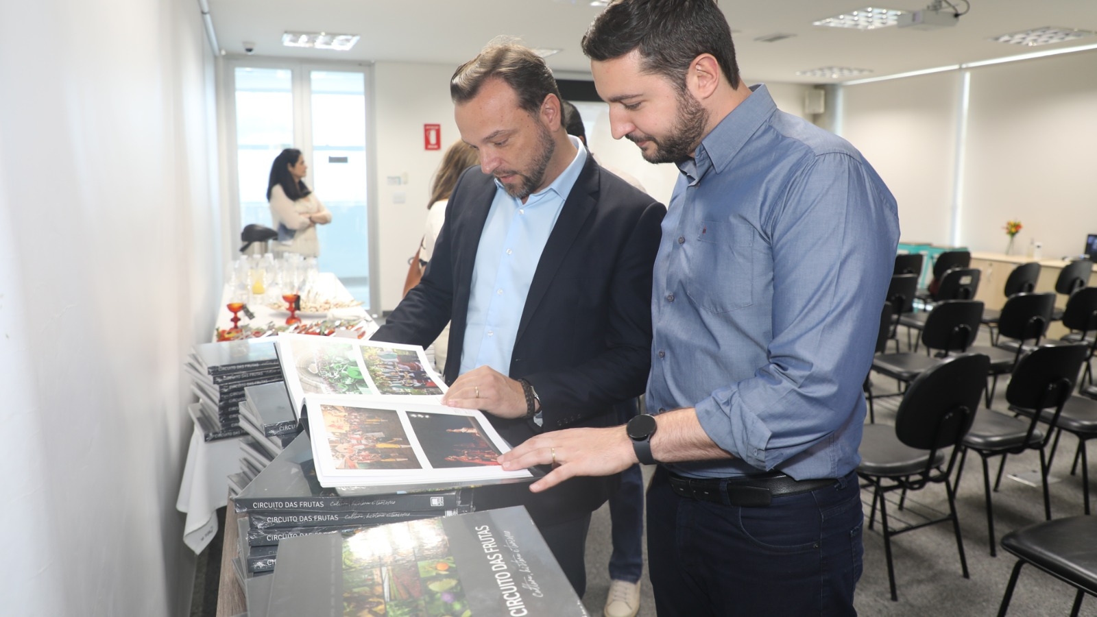O prefeito Paulo Finamore e o secretário de Desenvolvimento Econômico, Jailson Marinho, participaram nesta última segunda-feira (01), na sede da Rota das Bandeiras na cidade de Itatiba, do lançamento do livro “Circuito das Frutas – História, Cultura e Turismo”, uma obra de fine art produzida pela KM Cultural, em parceria com a Concessionária Rota das Bandeiras.