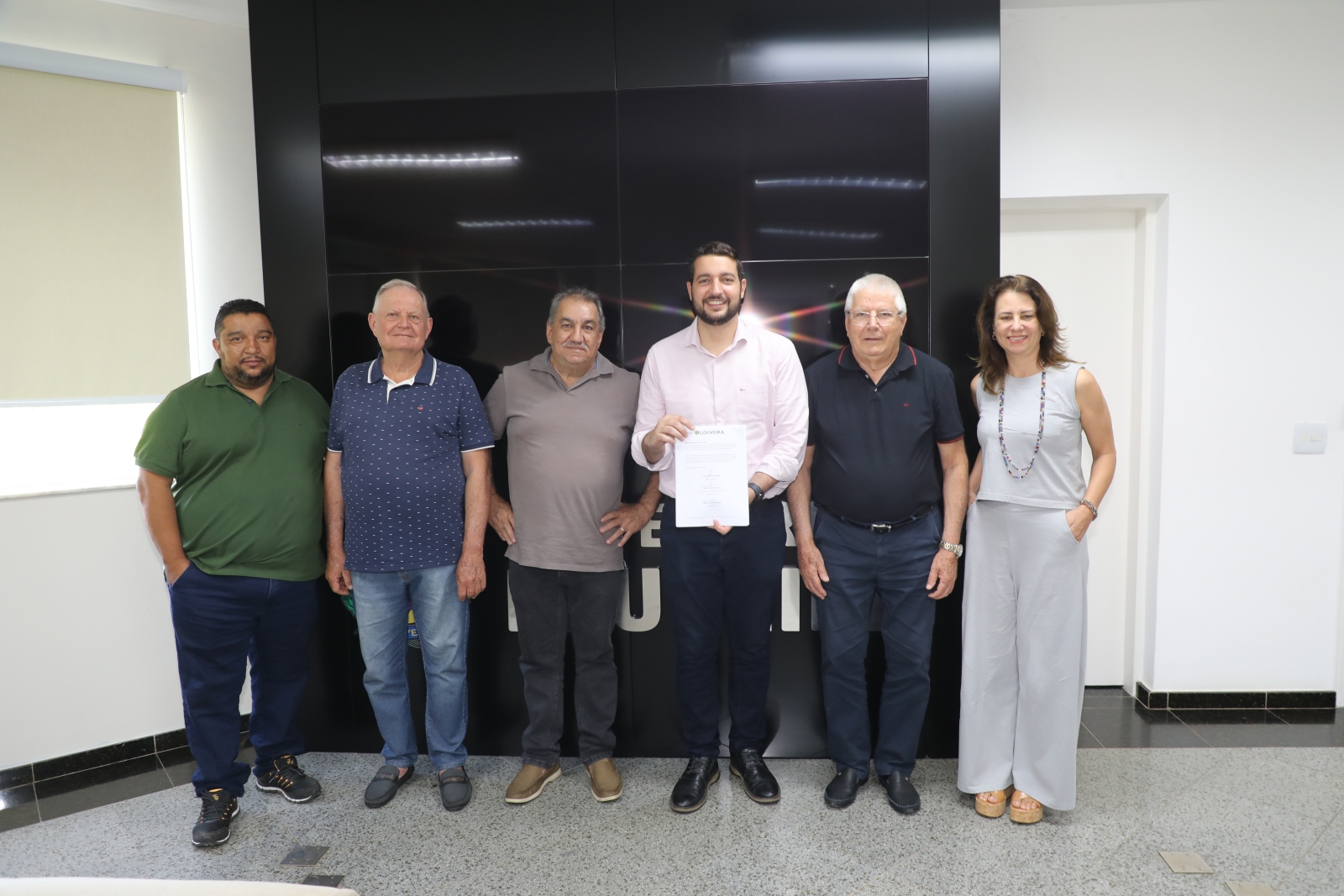 O Prefeito Paulo Finamore, juntamente com a secretária de assistência social Giany Póvoa, receberam no gabinete os representantes da Cáritas presentes na assinatura: Rubens Aparecido da Silva (Diretor Presidente), Evaristo José Cavalli (Diretor Vice-Presidente) e o Padre Adilson Amadi, fundador da Cáritas há 21 anos.