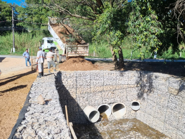 A obra do bairro Estiva, na Avenida Alexandre Biasi, foi executada com a implantação do sistema de gabião como muro de contenção e de tubulação para canalização da água, que estão em fase de conclusão. A equipe deu início nesta semana à fase de acabamento no entorno das encostas, com aterro e plantio de grama. A intervenção foi necessária depois de o local ter sido afetado pelo grande volume de água na época de chuvas intensas do início do ano e que promoveram a erosão de grande parte da encosta do Córrego Sapezal.