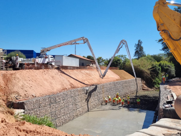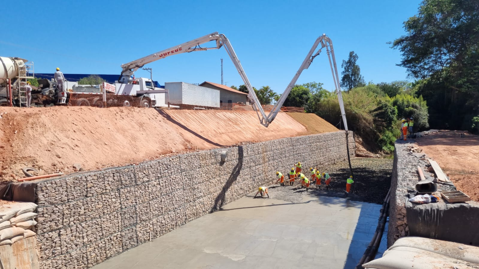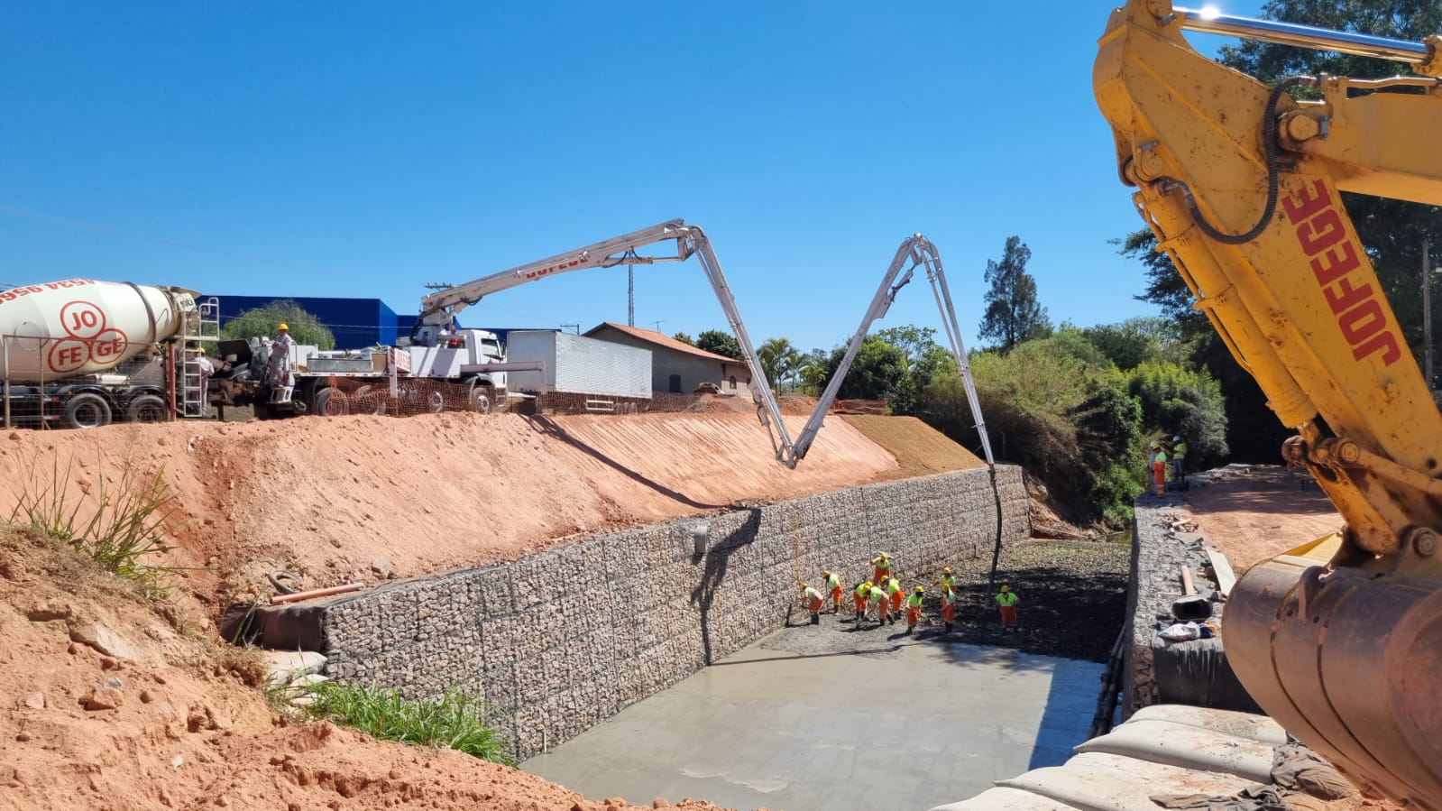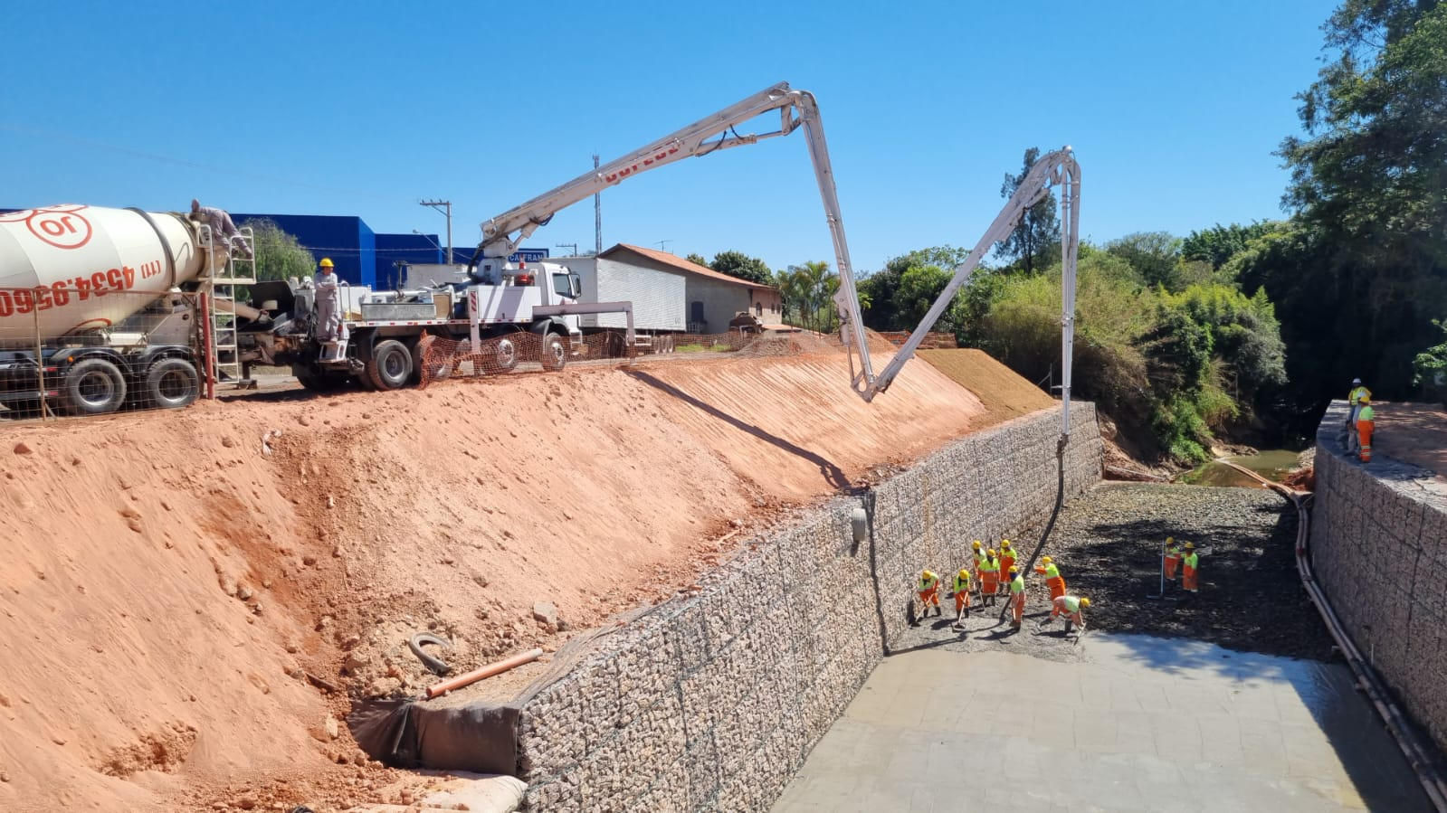 Com foco em segurança e estabilidade das encostas do Córrego, as intervenções acontecem em 2 pontos da cidade; na rotatória da Atílio Biscuola a Prefeitura realiza a concretagem do trecho ao lado da Rua Manoel Antonio Chiquetto; na Estiva, as obras estão em fase de conclusão