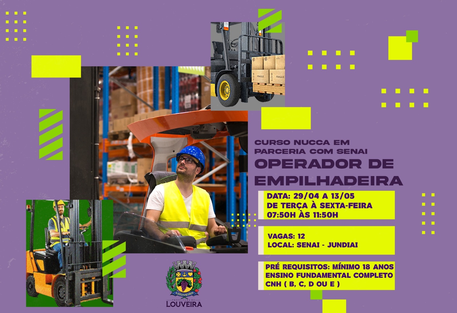A Prefeitura de Louveira, por meio da Secretaria de Desenvolvimento Econômico e do SENAI, está com inscrições abertas para o curso gratuito de Operador de Empilhadeira, voltado à qualificação profissional de moradores do município. A formação tem como objetivo desenvolver competências para operar empilhadeiras seguindo procedimentos técnicos e normas de segurança, saúde e meio ambiente.