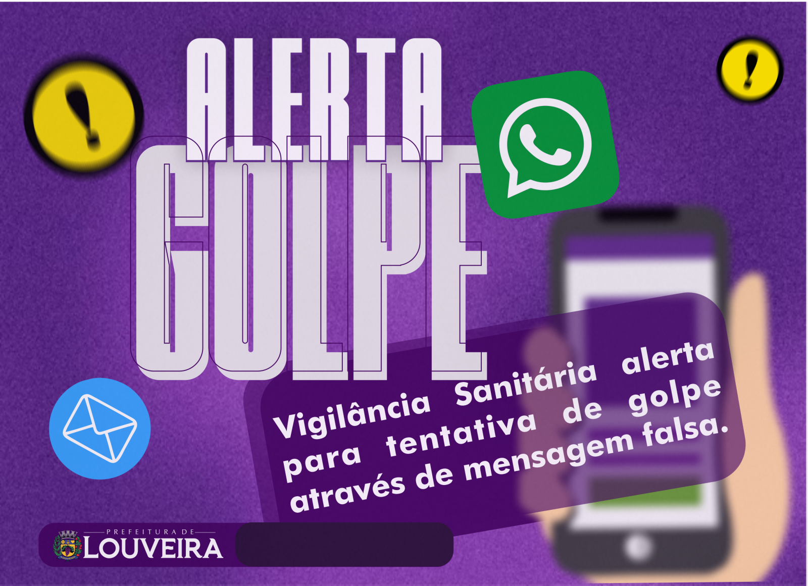 A Prefeitura de Louveira, por meio da Vigilância Sanitária, reforça o alerta para a população sobre golpes virtuais que estão em circulação na cidade. Segundo as autoridades, criminosos têm enviado mensagens falsas por e-mail, WhatsApp e ligações telefônicas com o objetivo de enganar os munícipes.