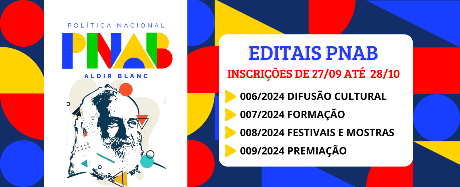 A Política Nacional Aldir Blanc de Fomento à Cultura (PNAB) é uma política que tem como objetivo incentivar a cultura no Brasil, por meio de repasses de recursos da União para os estados, municípios e Distrito Federal.