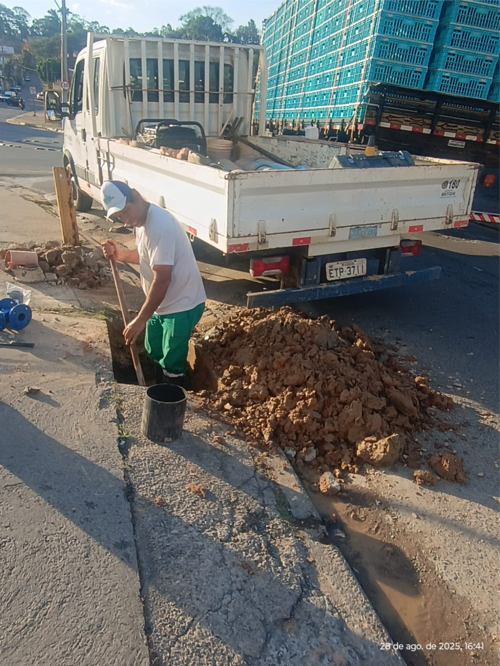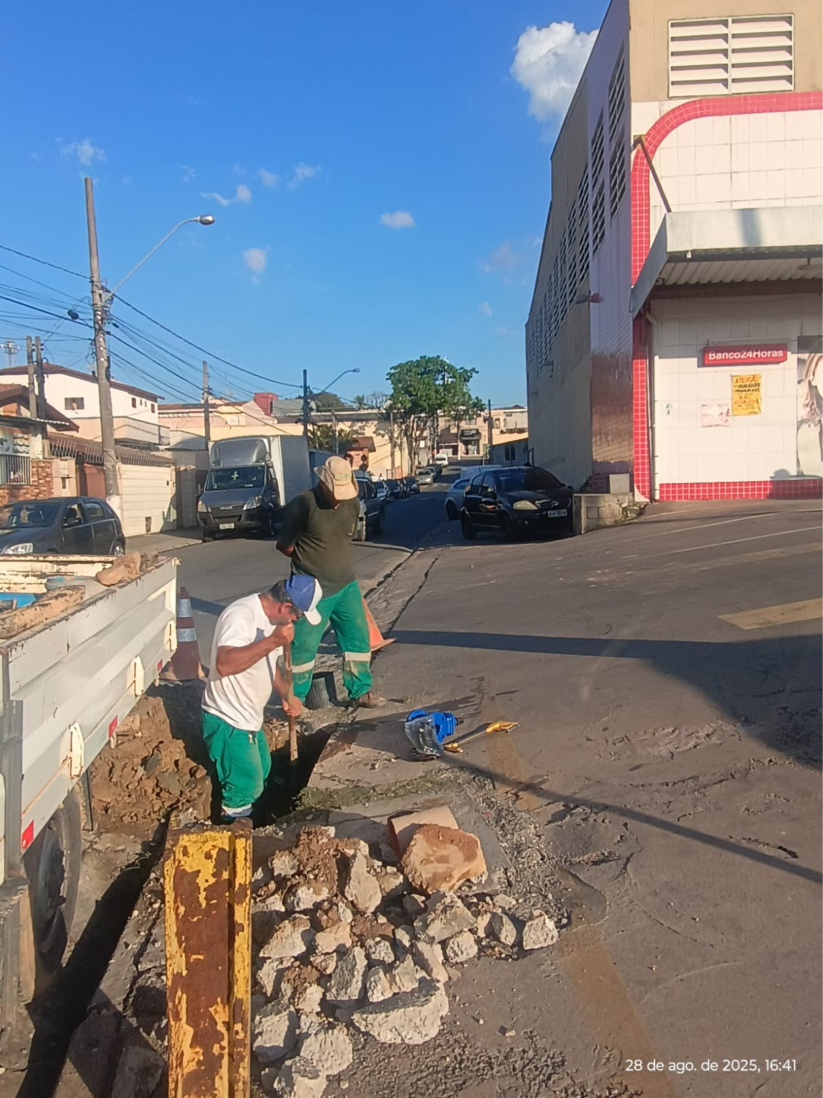 A rede de água da Rua João Pagotto, no centro do bairro Santo Antônio está recebendo obra emergencial do SAE, após apresentar vazamento, na tarde desta quinta-feira (28).