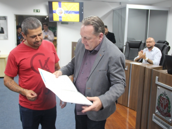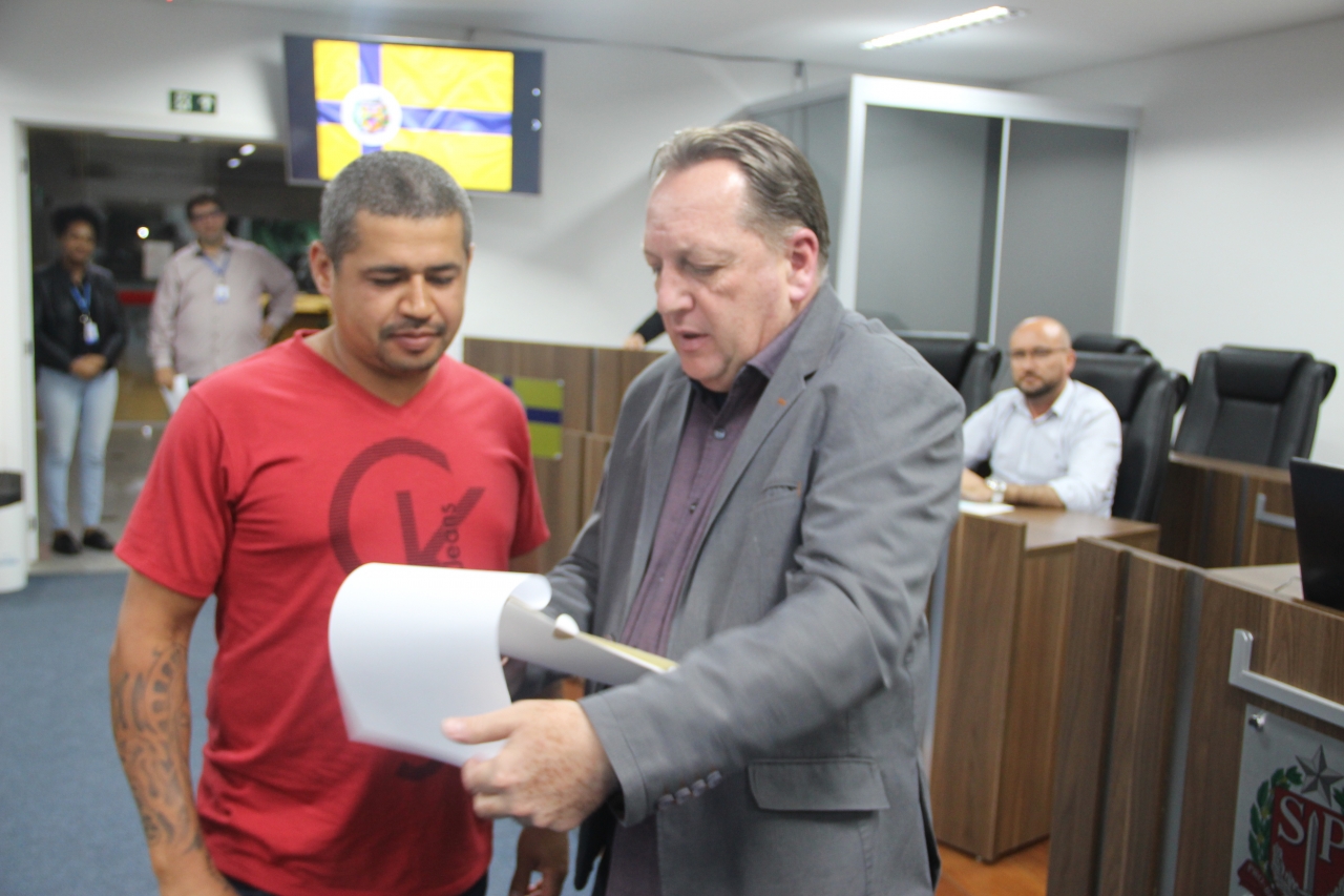 O prefeito de Louveira, Estanislau Steck, fez a entrega dos documentos junto com a superintendente da FumHab, Maria Aparecida Regorão da Cunha, e os vereadores Helinho, Nilson Cruz e Kaká Rodrigues, que também estiveram presentes.