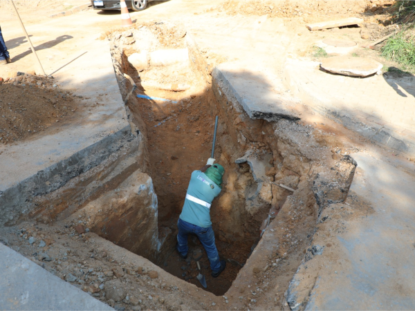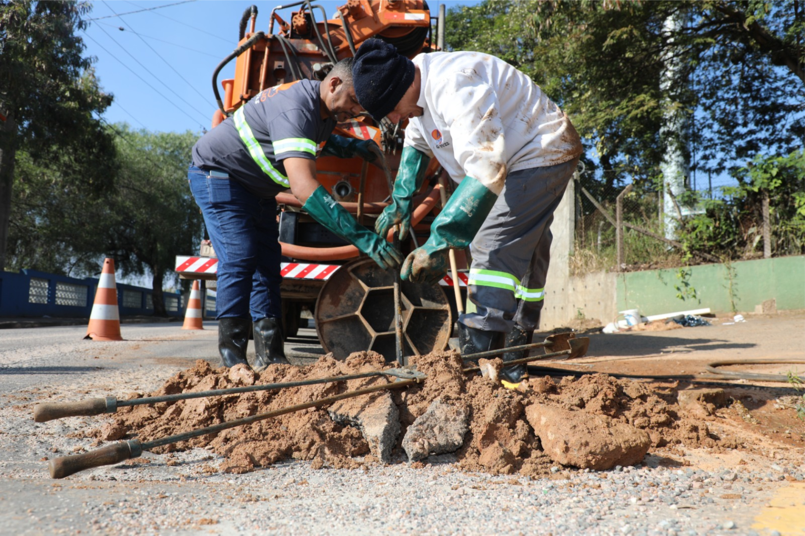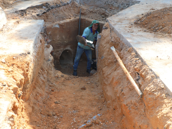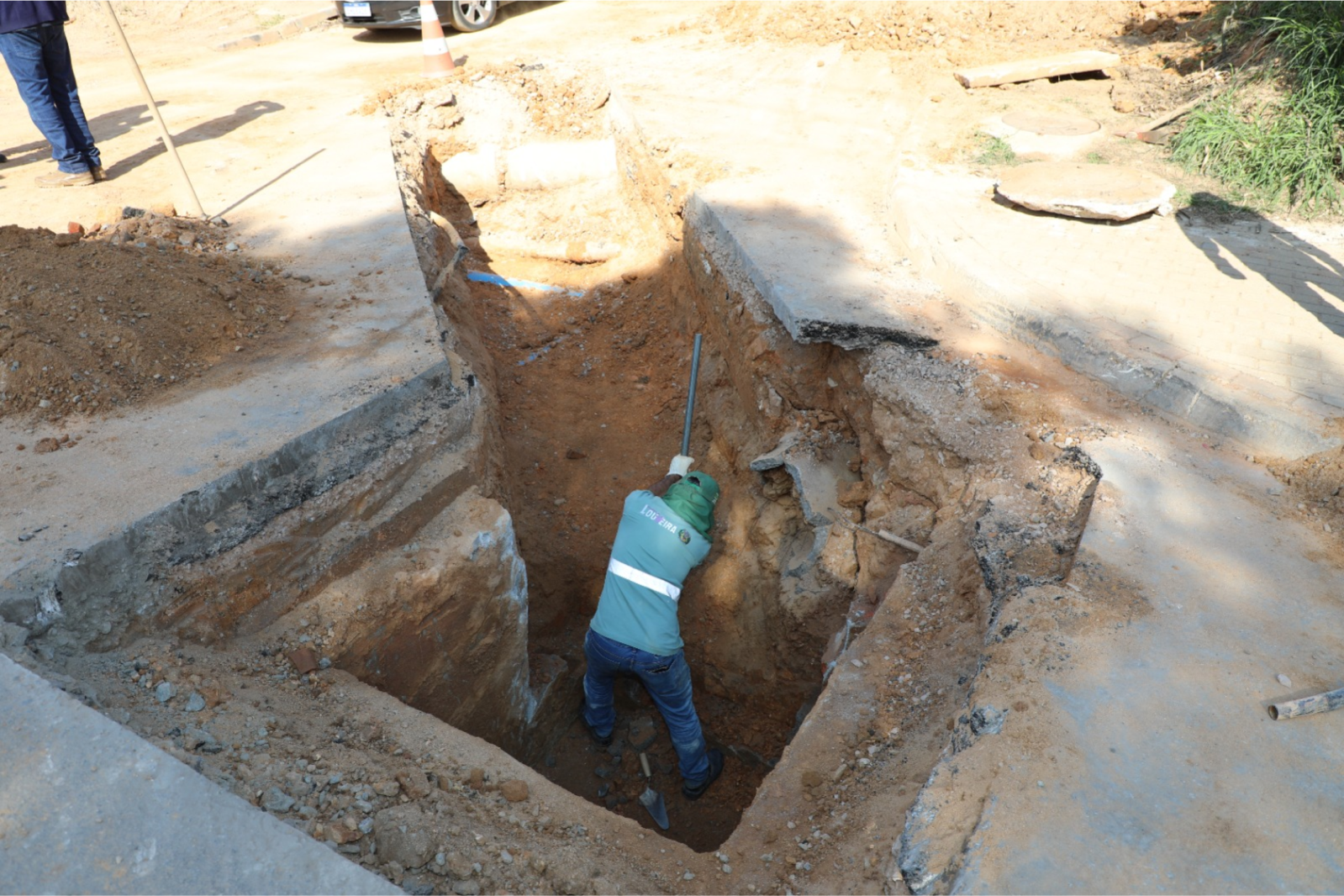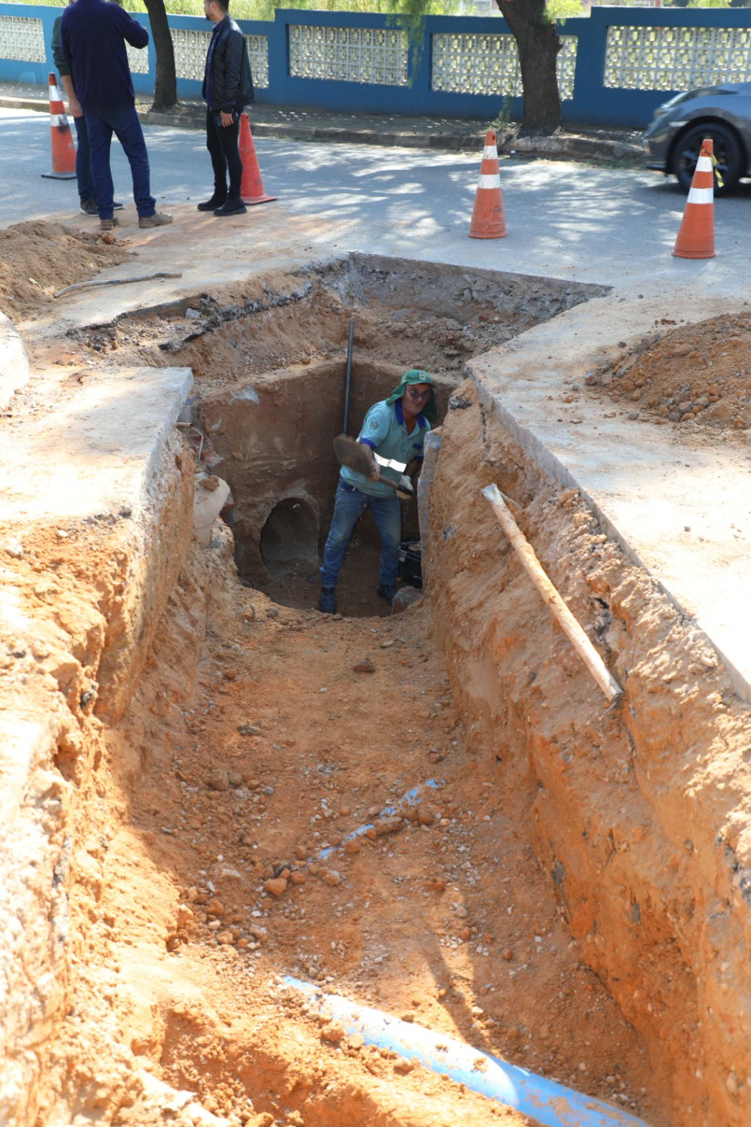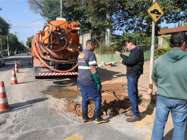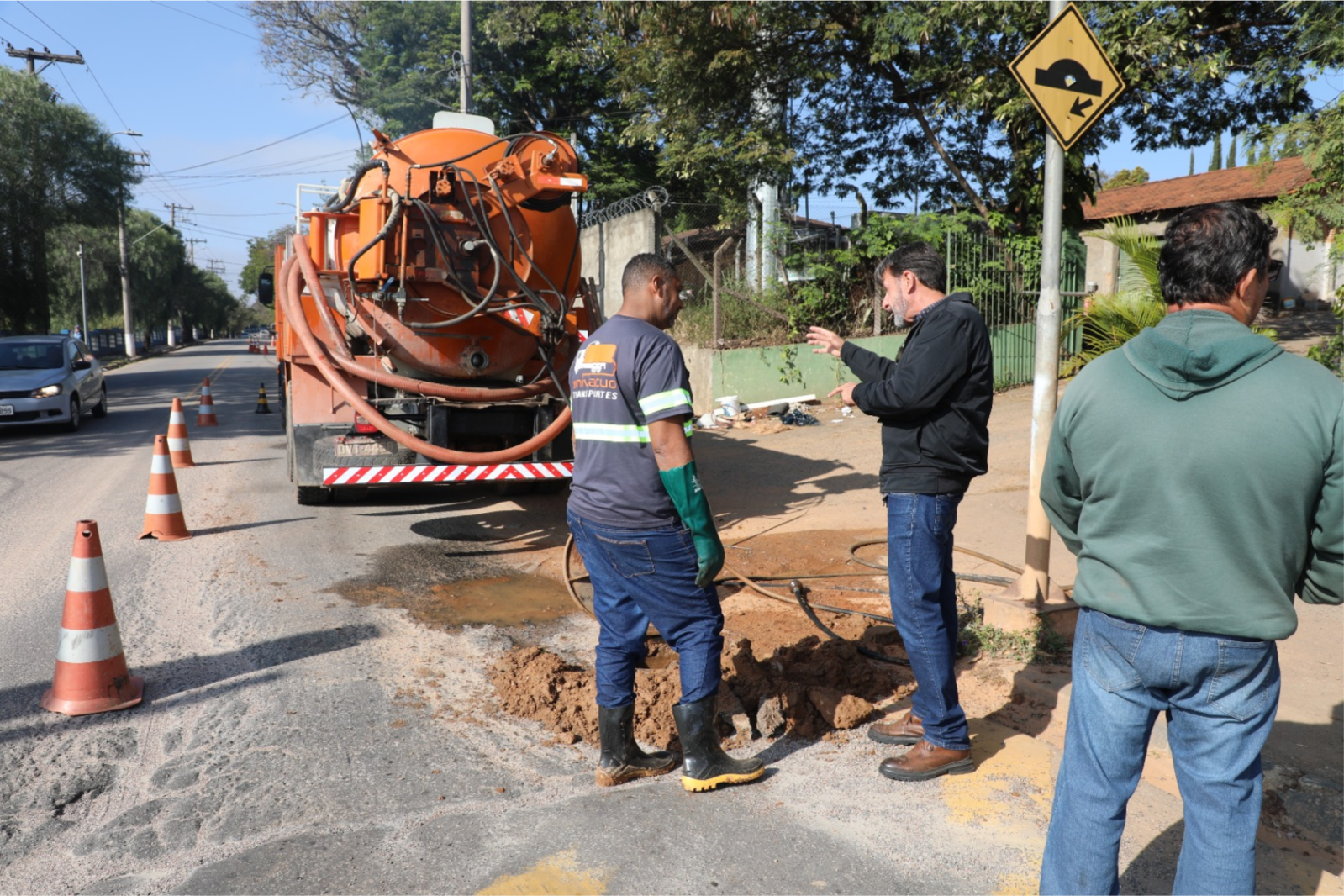 Agora, a Secretaria de Serviços Públicos está iniciando a tentativa de desobstrução da rede de drenagem entupida, para evitar a necessidade de abrir o pavimento e refazer a tubulação, como ocorreu na Av. Gualixo, no Monterrey, pelo mesmo motivo de uma obra não executada corretamente em 2024.